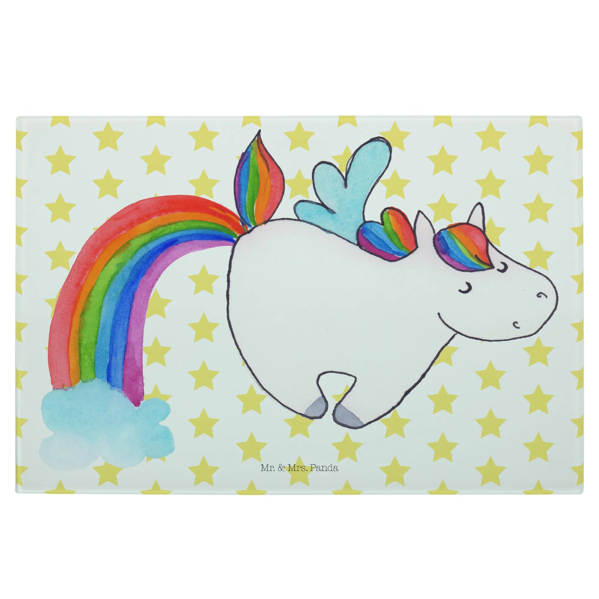 Glass chopping board unicorn Pegasus - Medium Glas Schneidbrett - with a saying - White