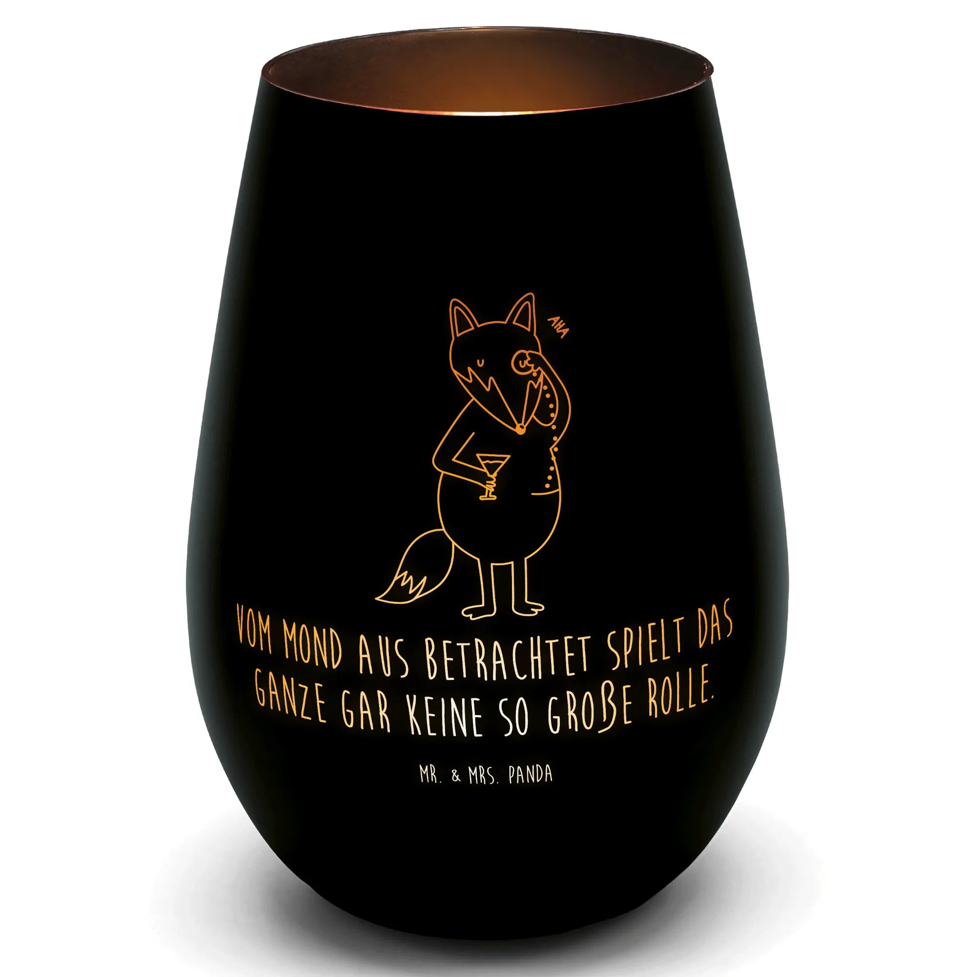 Introducing the stunning Gold Lantern by Mr. & Mrs. Panda! Standing at a charming height of 120 mm (5 inch) and with a diameter of 85 mm (3 inch), this elegant glass lantern not only serves as a beautiful décor piece but also sets the mood for cozy and romantic evenings. Each lantern is finely engraved with delightful designs and sayings unique to our brand, transforming any space into a serene atmosphere. Made from high-quality glass, it's perfect for standard tealights and offers optimal protection against the wind, making it ideal for those festive summer nights or intimate gatherings. An enchanting matte effect develops when the warmth from the candle wears away the surface, revealing the exquisite patterns. Plus, this lantern is dishwasher safe but we recommend gentle handwashing to preserve its beauty. Unwind and enjoy the soft glow of candlelight with the Gold Lantern—a practical yet striking addition to your home!