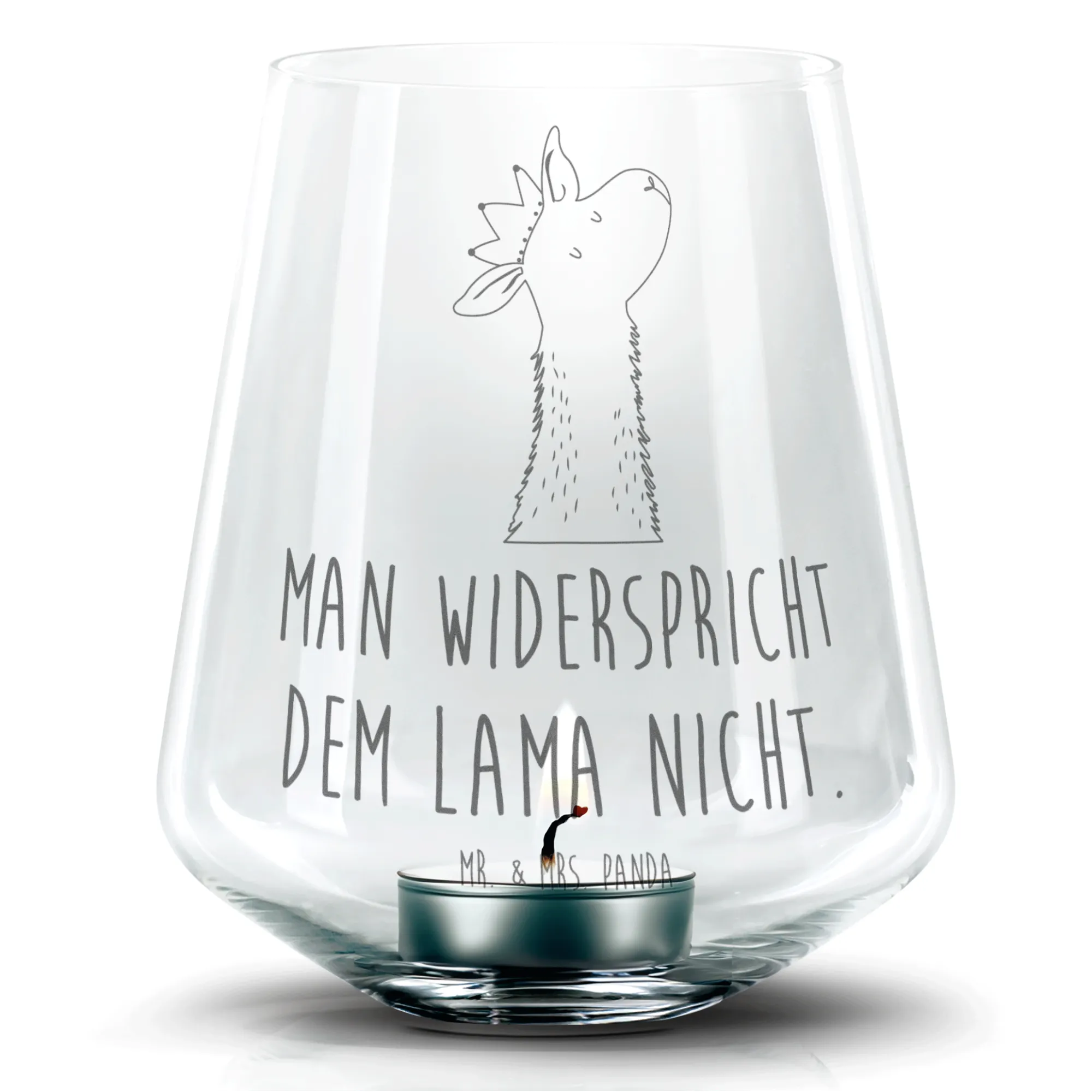 Graviertes Windlicht Lamakopf König - mit Spruch