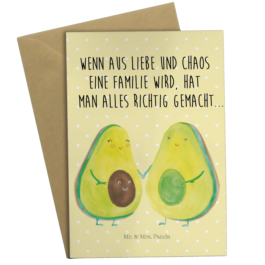 Introducing the delightful Avocado Couple greeting card from the charming collection by Mr. & Mrs. Panda! This unique folding card showcases a sweet avocado pair holding hands, gazing lovingly at each other. Perfect for celebrating the simple joys of love, this card makes an ideal choice for a variety of occasions including weddings, baby showers, birthdays, and even to welcome a new addition to the family.