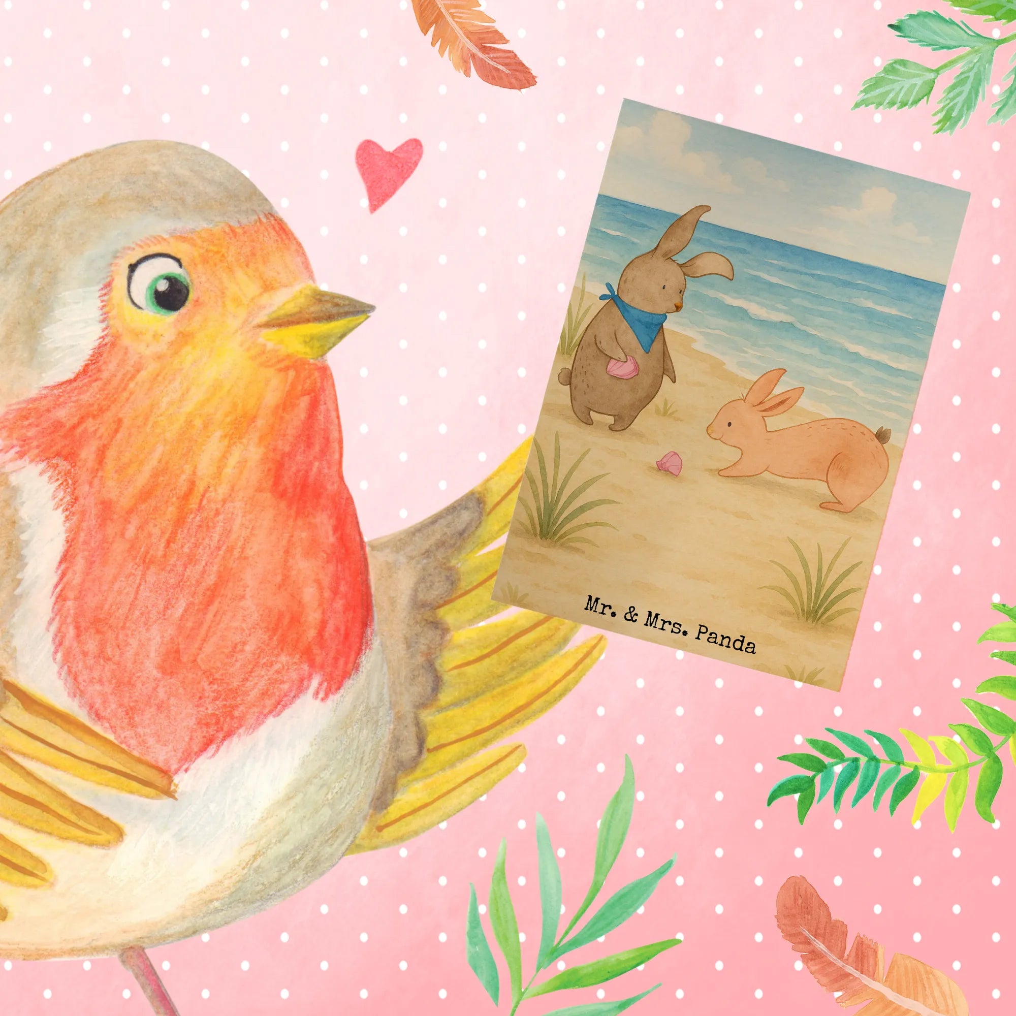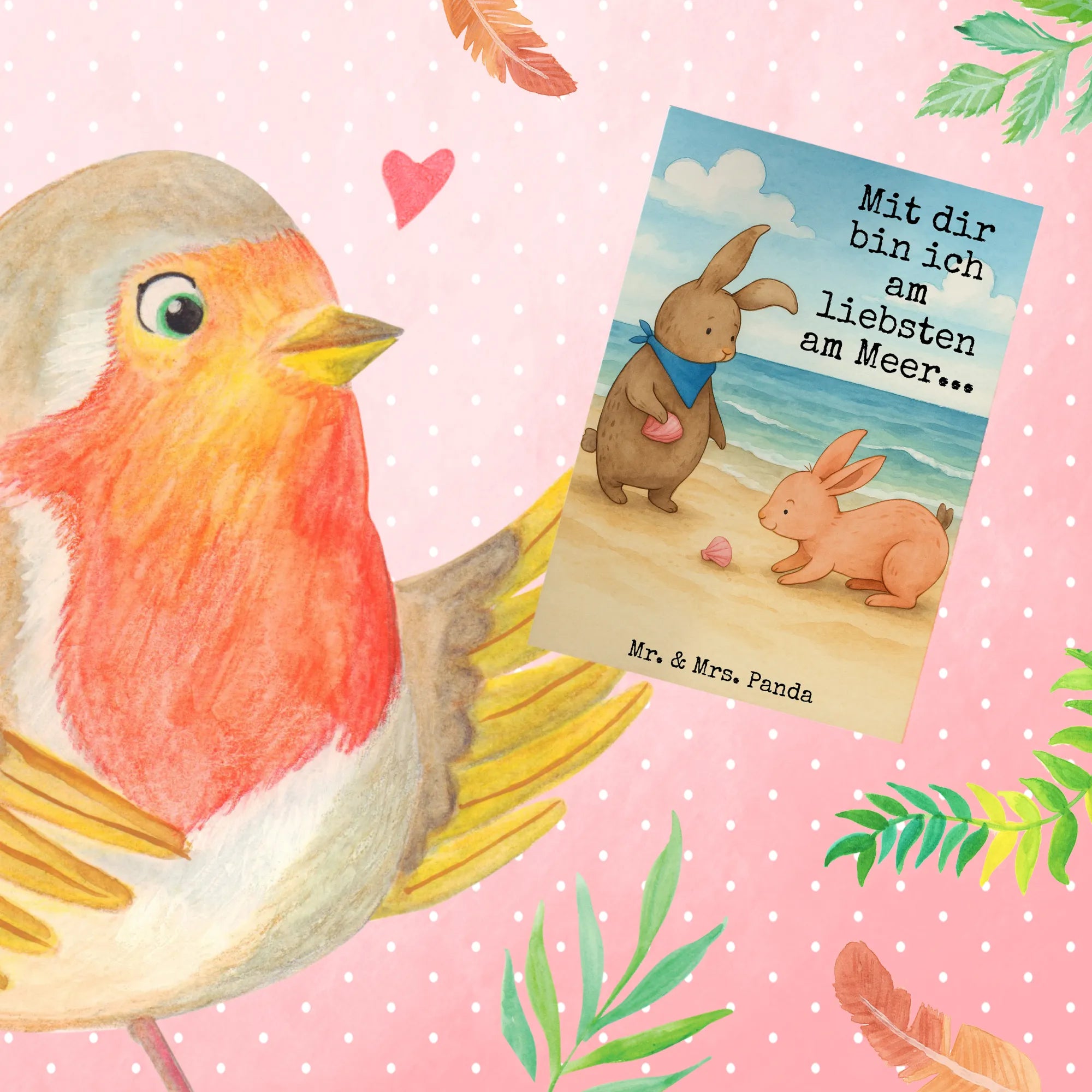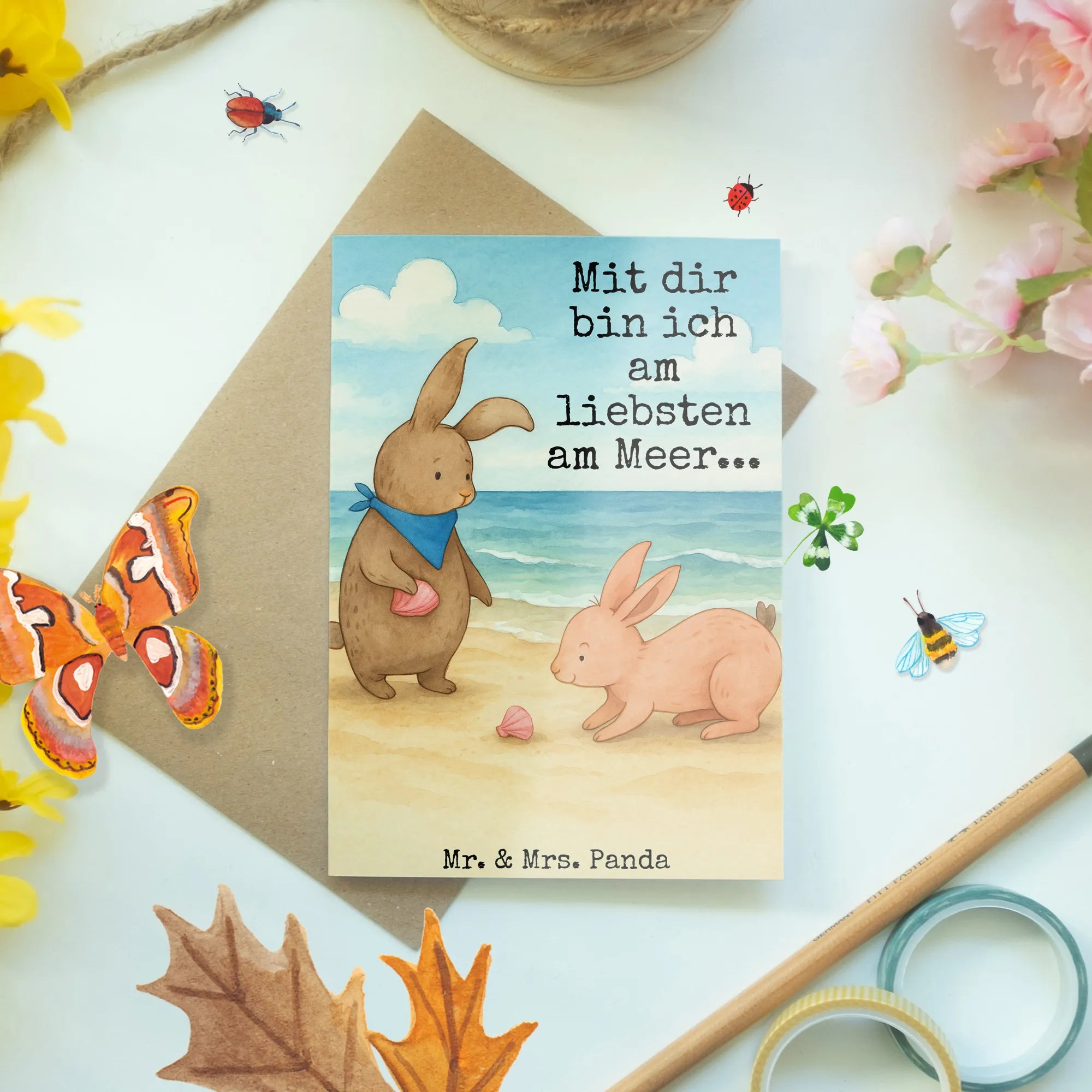 Greetings card Bunnies with seashell Design – Mr. & Mrs. Panda