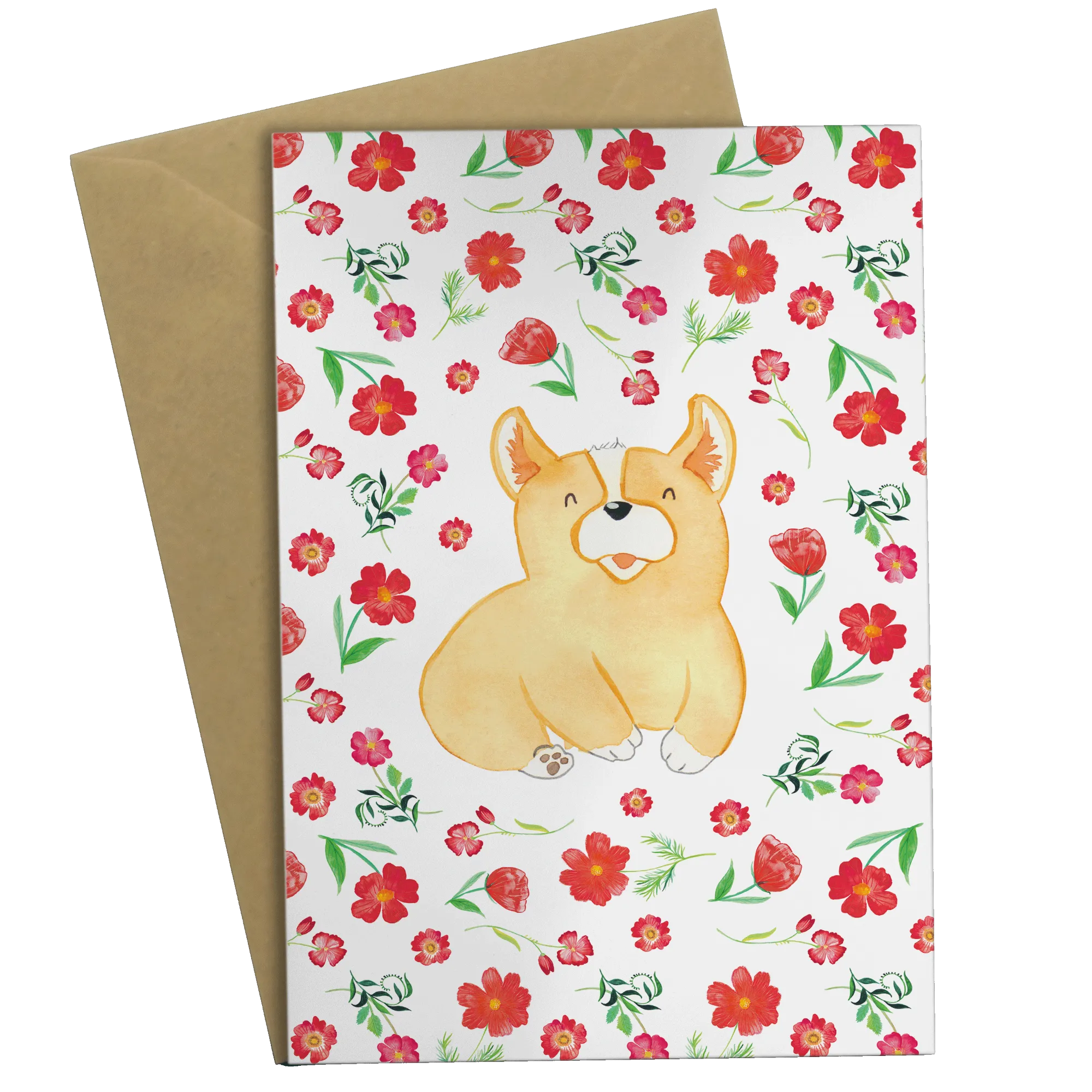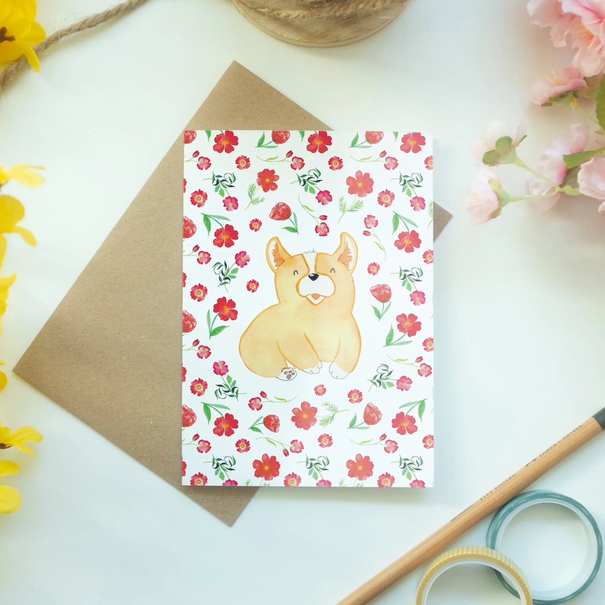 Designed with the utmost care, this card showcases a lovable Corgi amidst a beautiful floral motif, adding a splash of color and happiness to any occasion. Measuring 148 mm by 105 mm (6 inches x 4 inches), it's perfectly sized for notes of love or cheerful invitations. Crafted from high-quality 300-gram cardboard, its glossy front and back provide a glamorous touch, while the matte inner side allows for easy writing, making it ideal for personalized greetings.