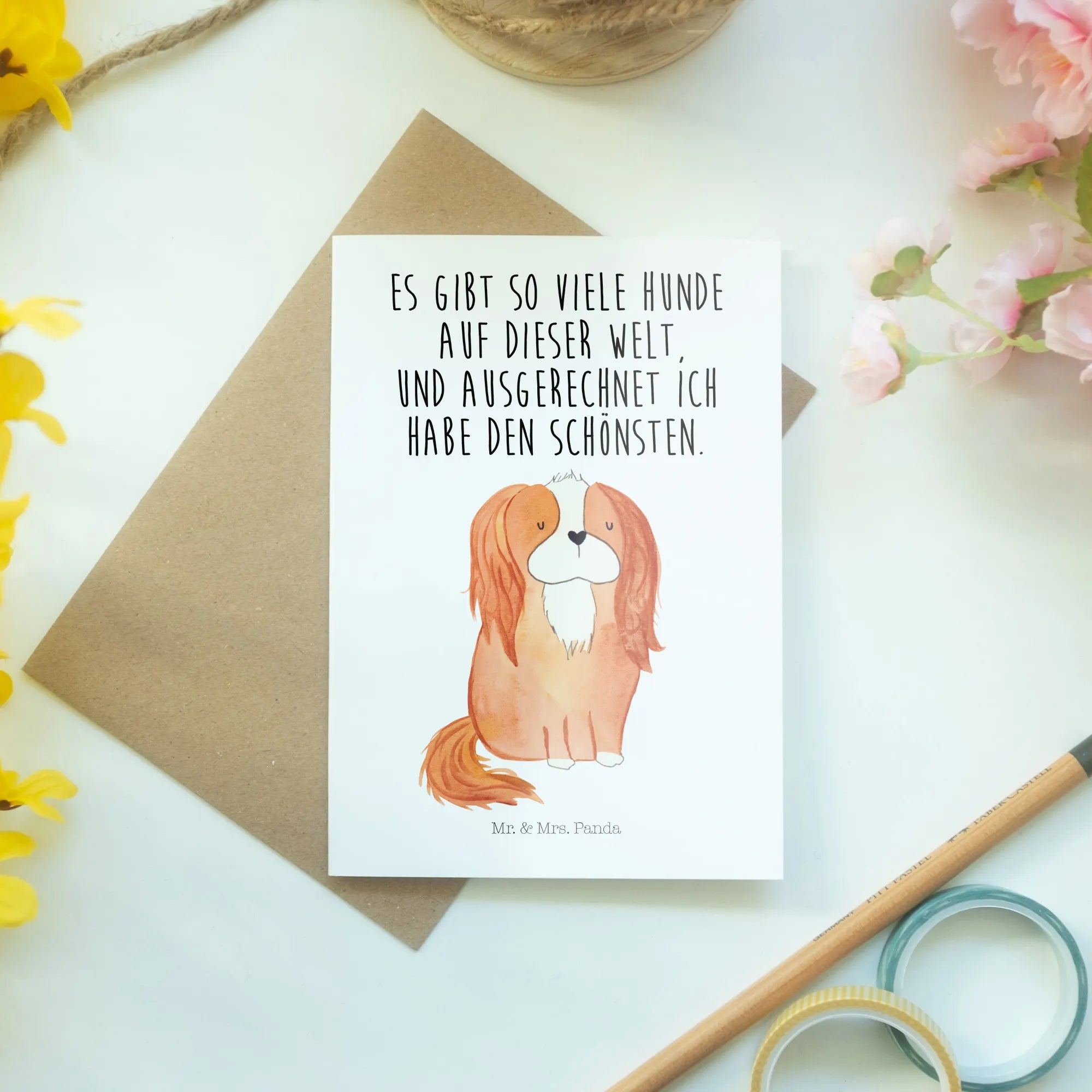 Introducing the heartwarming Cavalier King Charles Spaniel Greetings Card from Mr. & Mrs. Panda, a delightful addition to our Dog Collection. If you know someone who is a proud dog lover or perhaps a devoted Cocker Spaniel enthusiast, this charming card is the perfect way to convey your heartfelt thoughts!