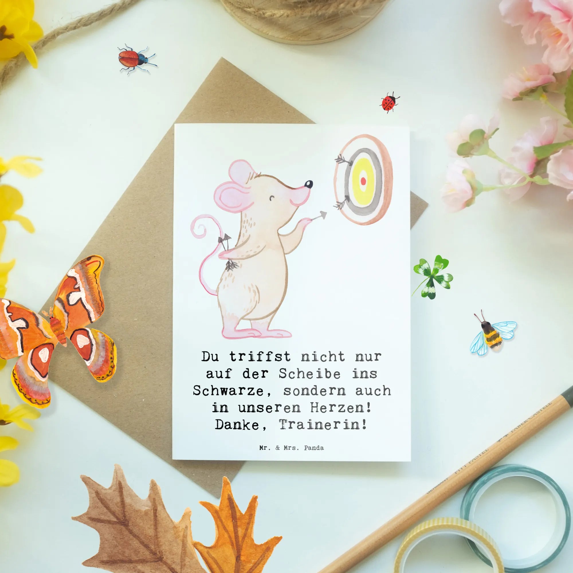 Greetings card Du triffst nicht nur auf der Scheibe ins Schwarze, sondern auch in unseren Herzen! Danke, Trainerin! - White