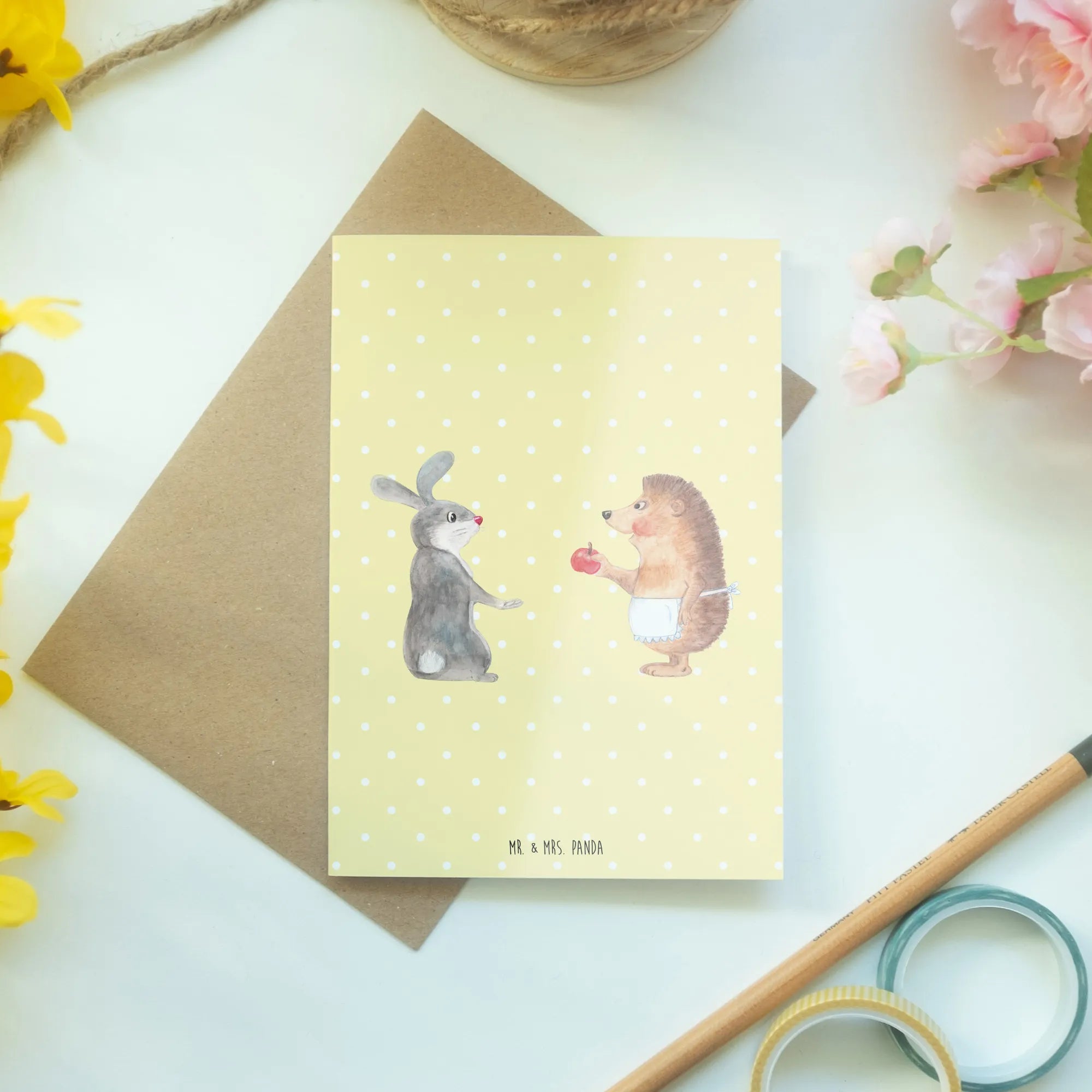 The Mr. & Mrs. Panda Small World collection shines with its colorful and lively designs, capturing the essence of our enchanting animal kingdom. It's a great choice for animal lovers, with cute and funny animal motifs that are bound to bring delight. This hedgehog and hare pair is just one example of the loving moments portrayed in this collection, making it the perfect gift idea for anyone who appreciates heartfelt emotions and adorable designs.