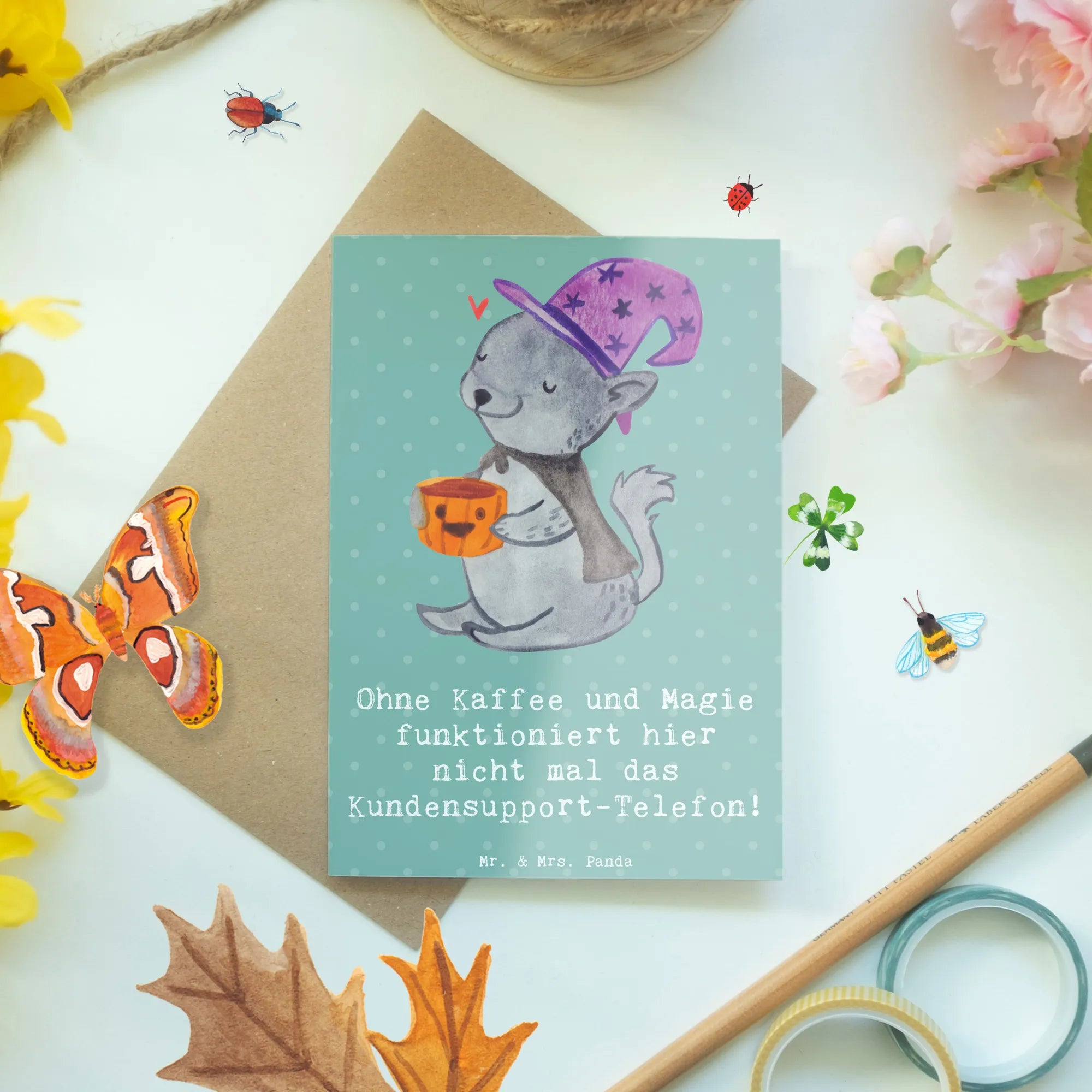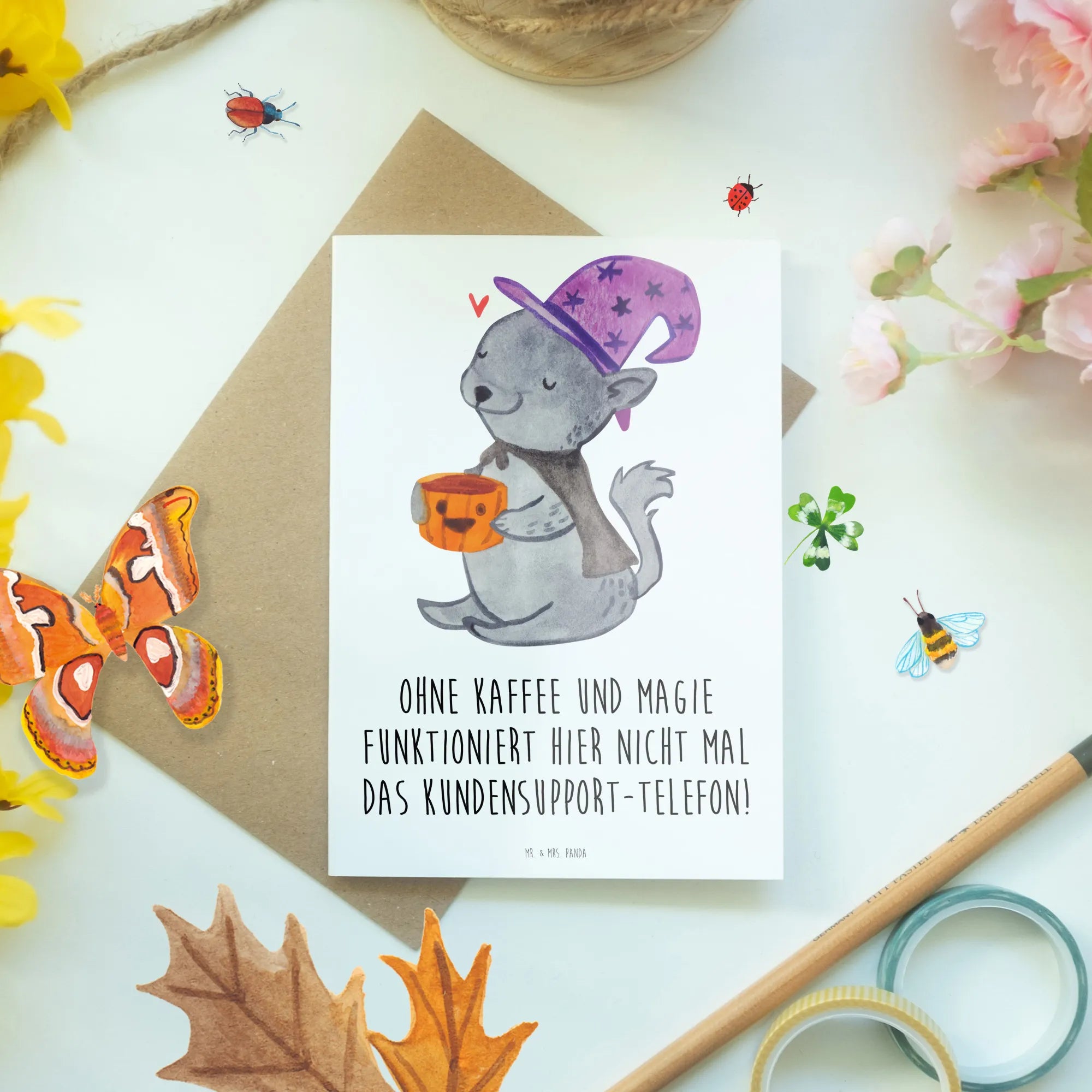 Greetings card Ohne Kaffee und Magie funktioniert hier nicht mal das K – Mr. & Mrs. Panda