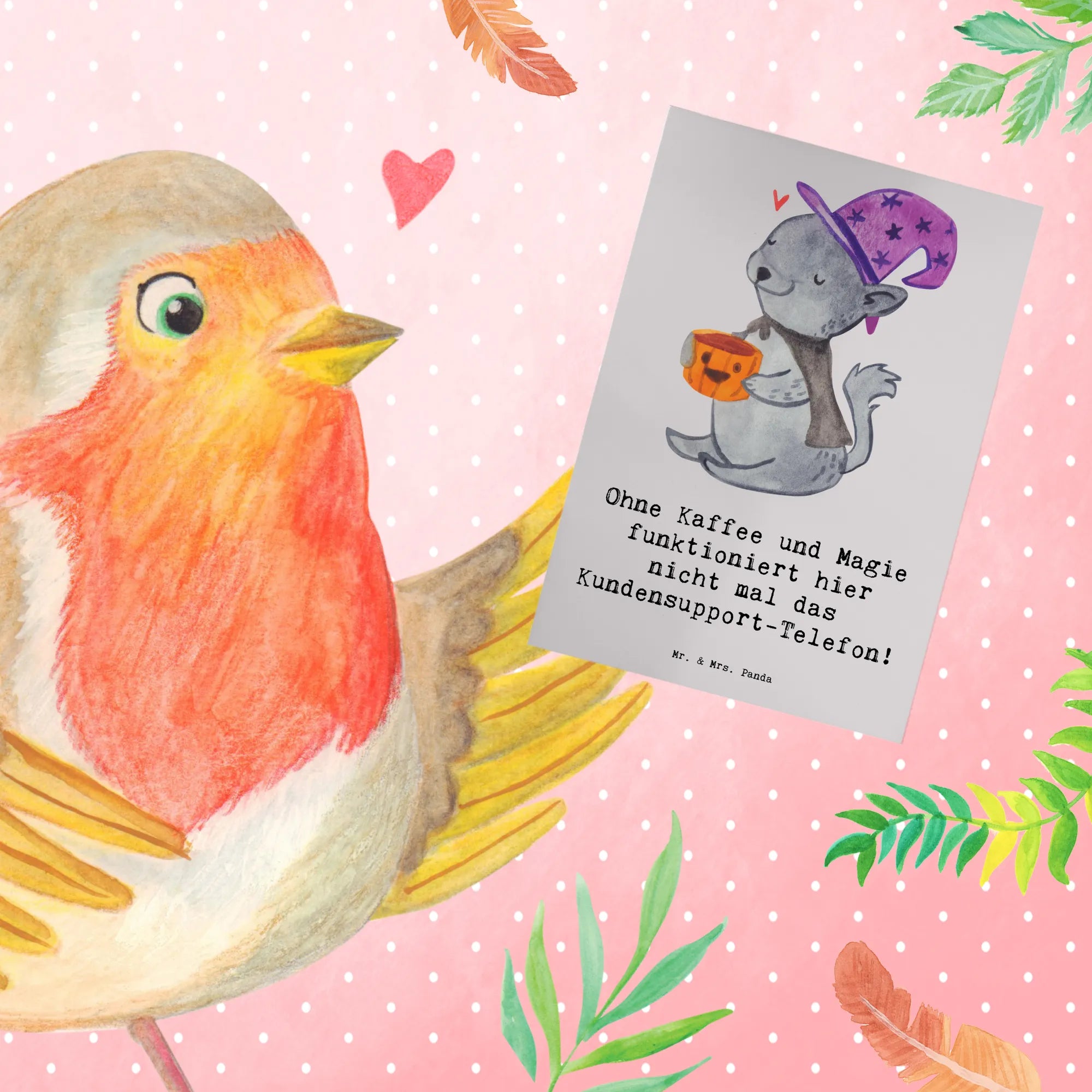 Greetings card Ohne Kaffee und Magie funktioniert hier nicht mal das Kundensupport-Telefon! Klappkarte, Glückwunschkarte, Karte, Hochzeitskarte, Grußkarte, Geburtstagskarte, Einladungskarte, Ansichtskarten, Beruf, Ausbildung, Jubiläum, Abschied, Rente, Kollege, Kollegin, Geschenk, Schenken, Arbeitskollege, Mitarbeiter, Firma, Danke, Dankeschön