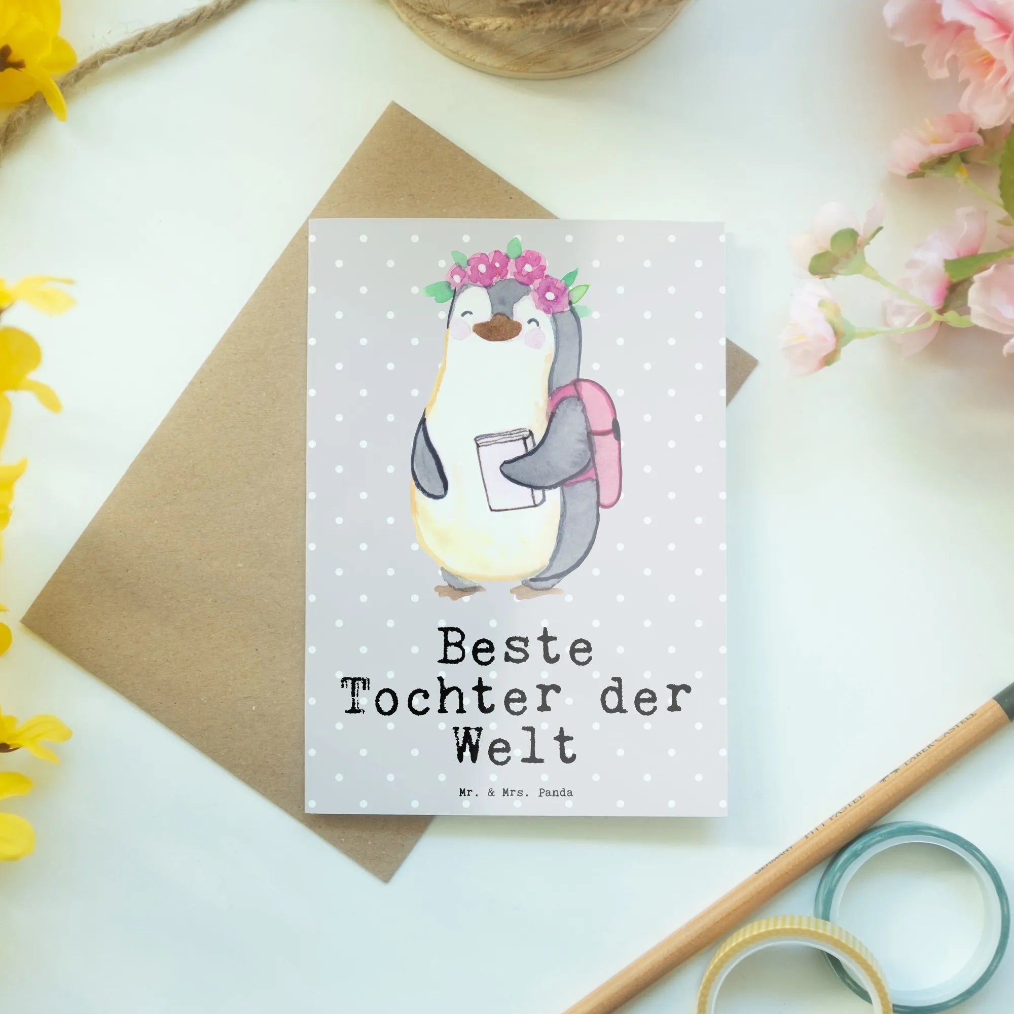 Here's our delightful penguin, proudly wearing the title of the best daughter in the world. With a floral crown and a handy backpack, she embraces all the adventures that come her way. This charming motif, 'Beste Tochter der Welt,' is a beautiful reminder of how special our daughters are to us. Each moment we spend with our little one is a treasure that makes family life so fulfilling. The joy, curiosity, and unfiltered love that our daughters bring to our lives can never be quantified. Holding a book close, she symbolizes the journey of growth and the endless possibilities that await, reminding us to cherish every step of the way.