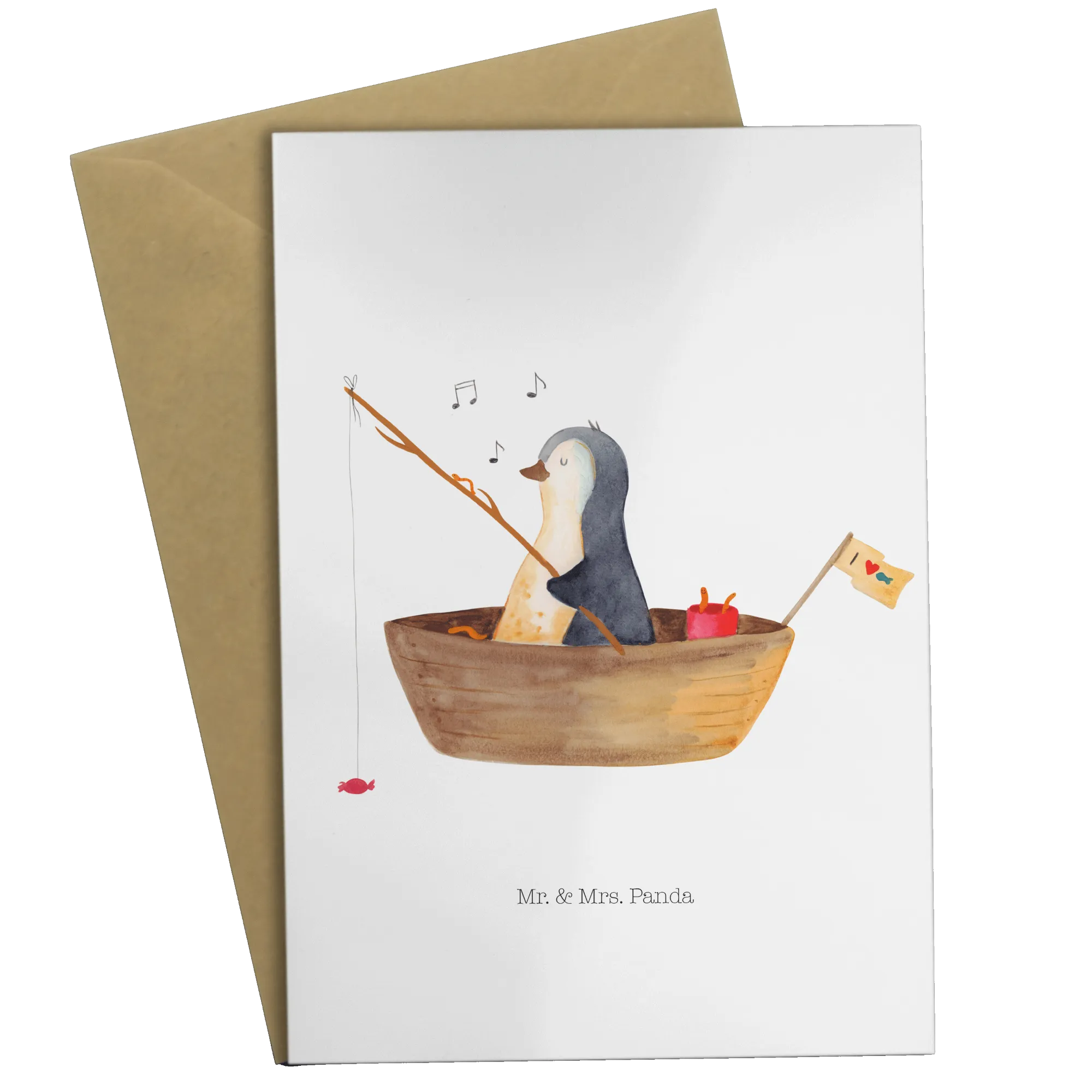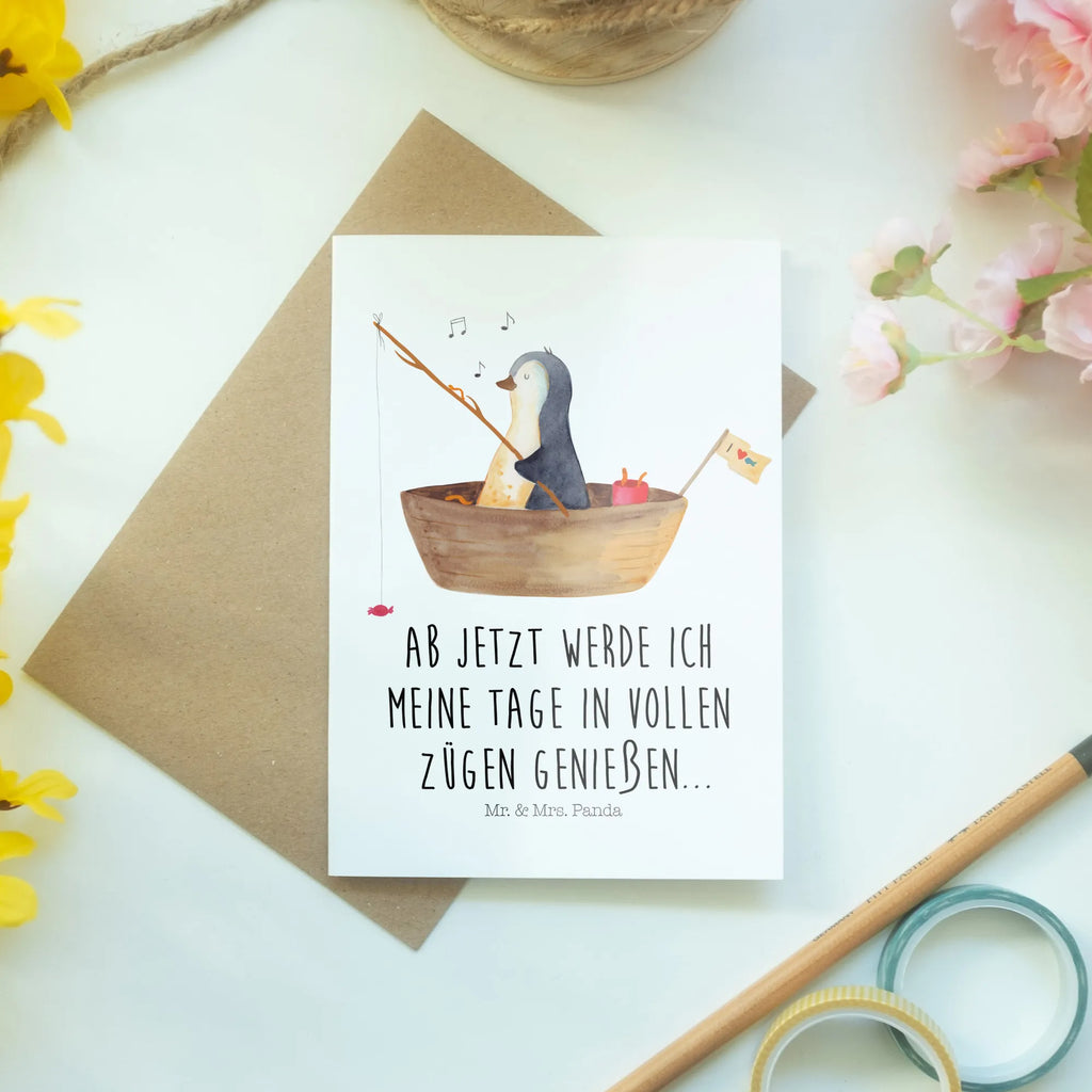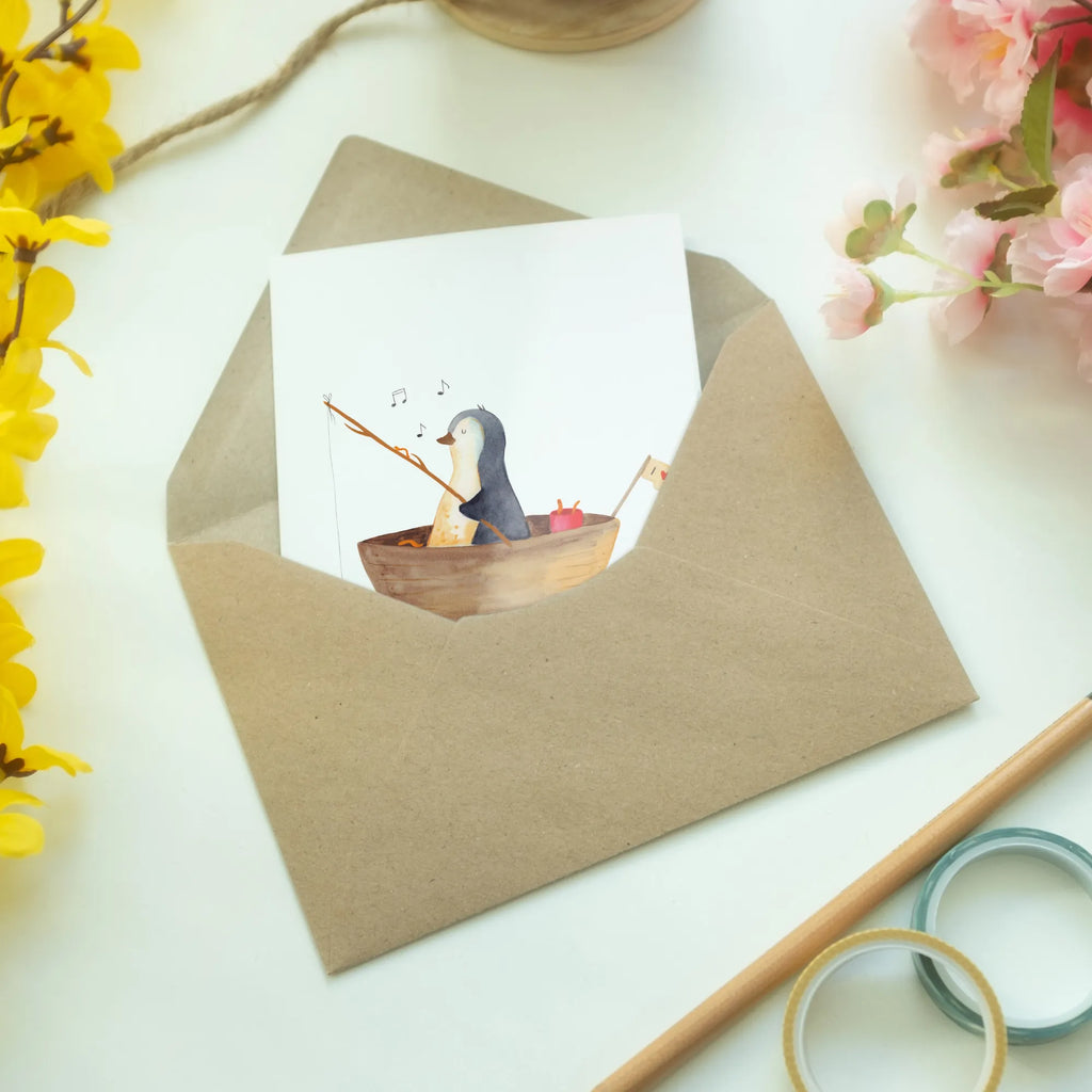Greetings card Penguin fishing boat – Mr. & Mrs. Panda