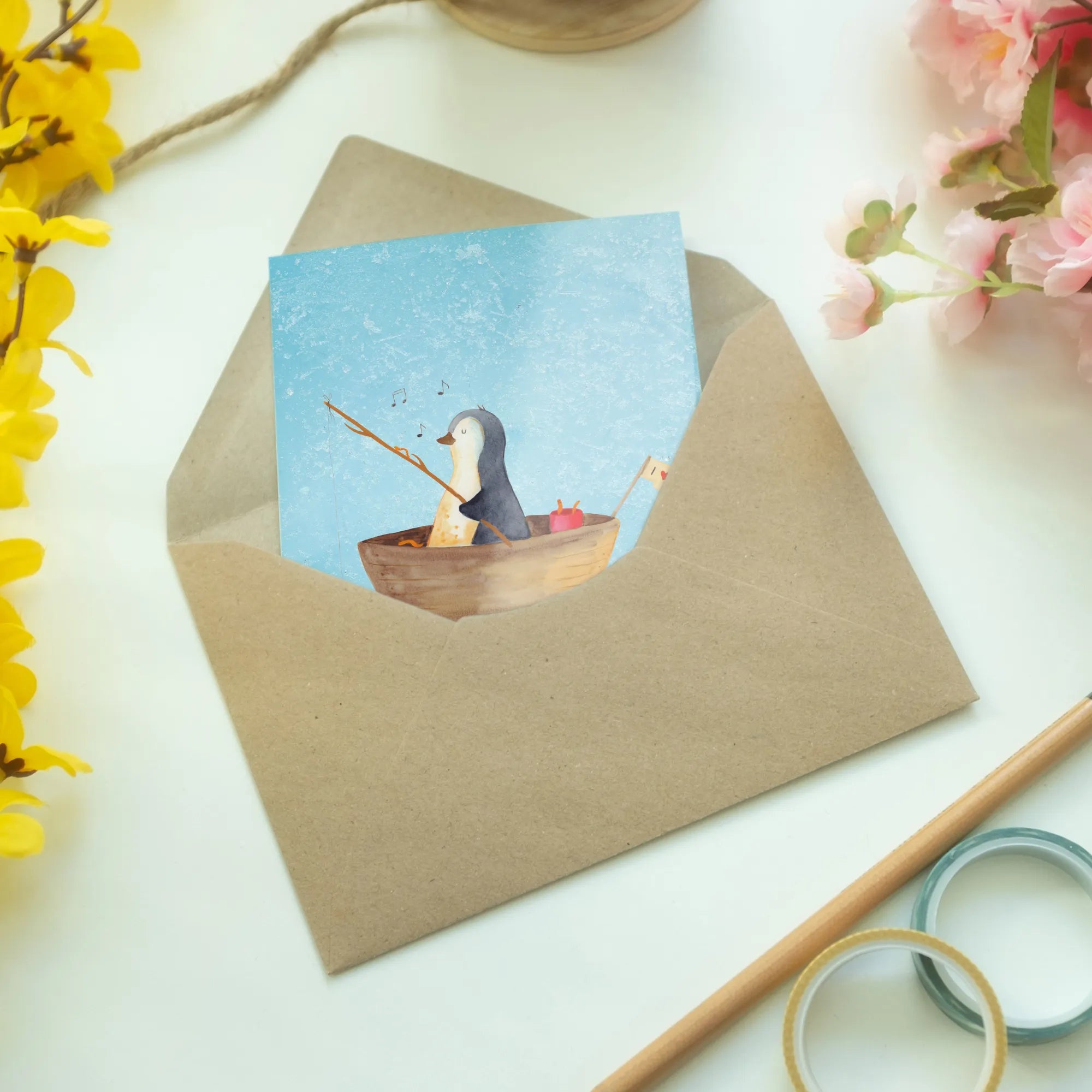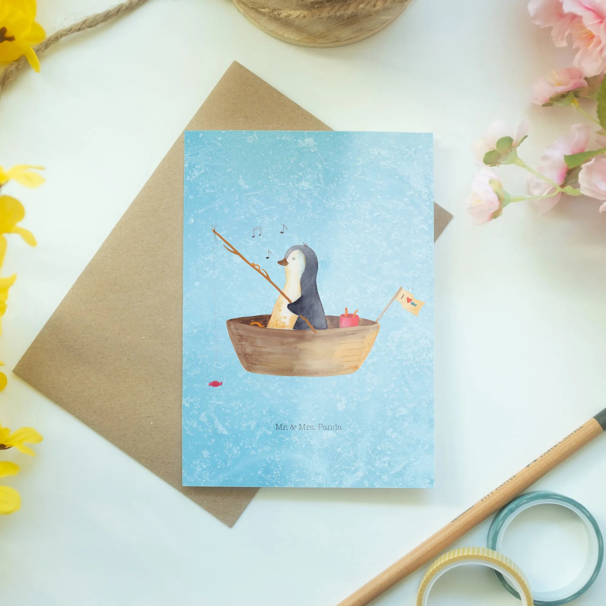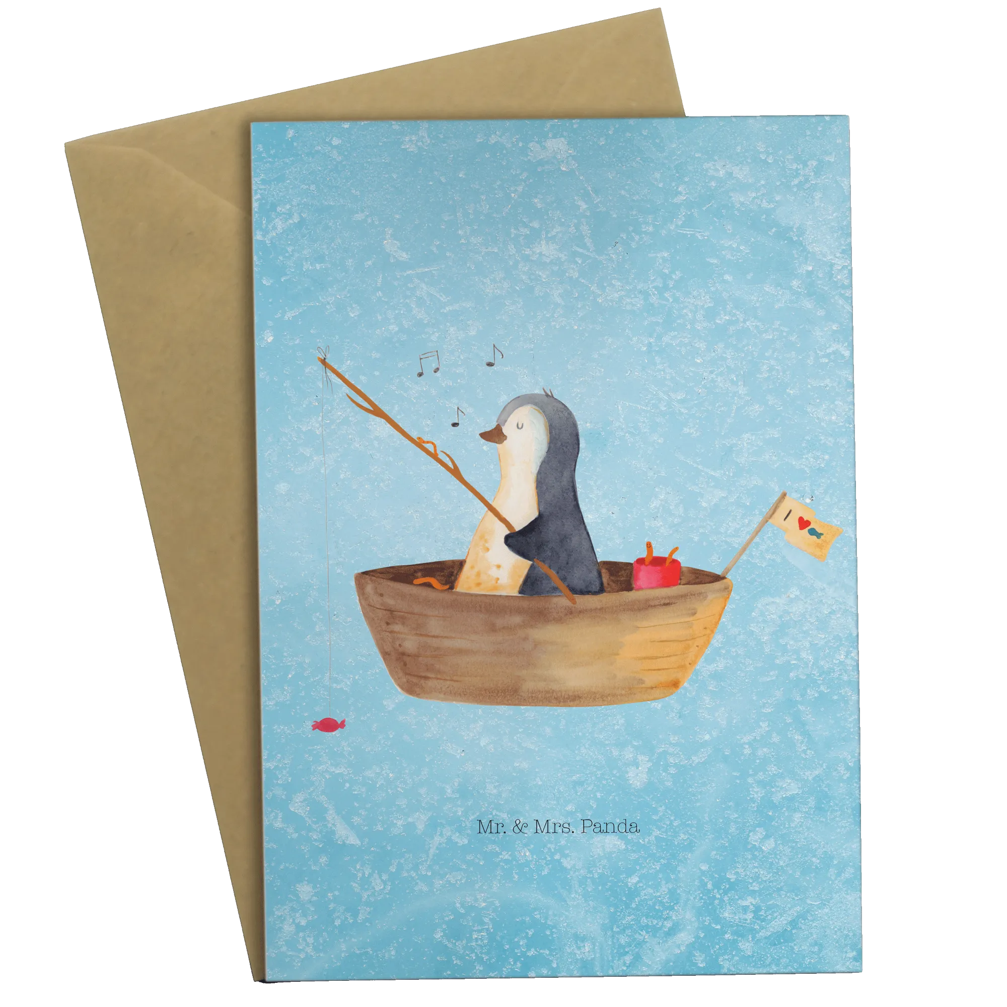 Greetings card Penguin fishing boat – Mr. & Mrs. Panda