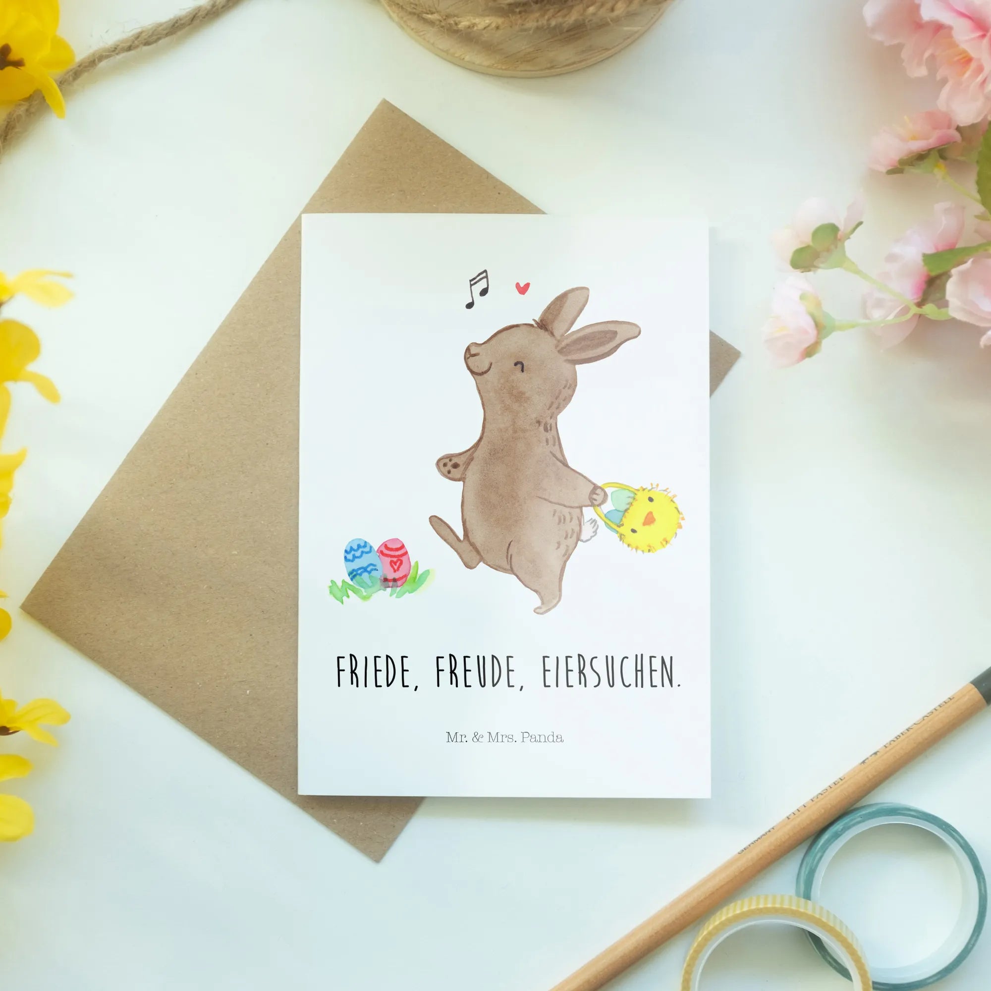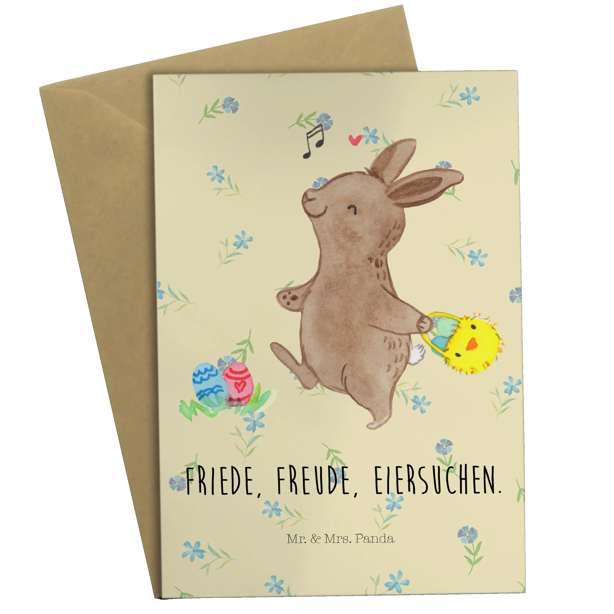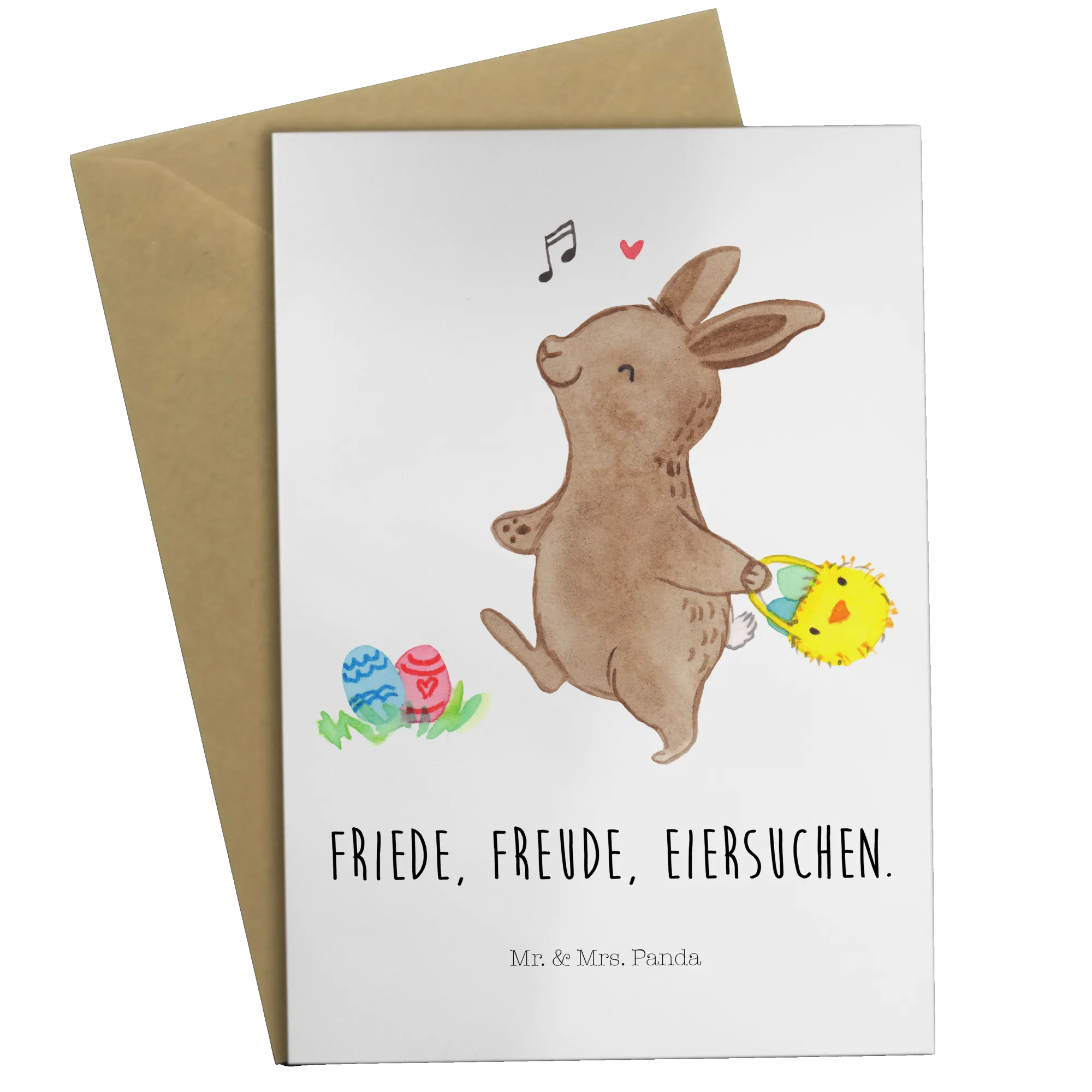 Whether you're sending it as a birthday card or a thoughtful Easter greeting, this card is ideal for anyone who enjoys celebrating the joy and love that Easter brings. With the sweet slogan "Friede, Freude, Eiersuchen," it embodies the fun and excitement of Easter egg hunts, making it a memorable keepsake for your loved ones.