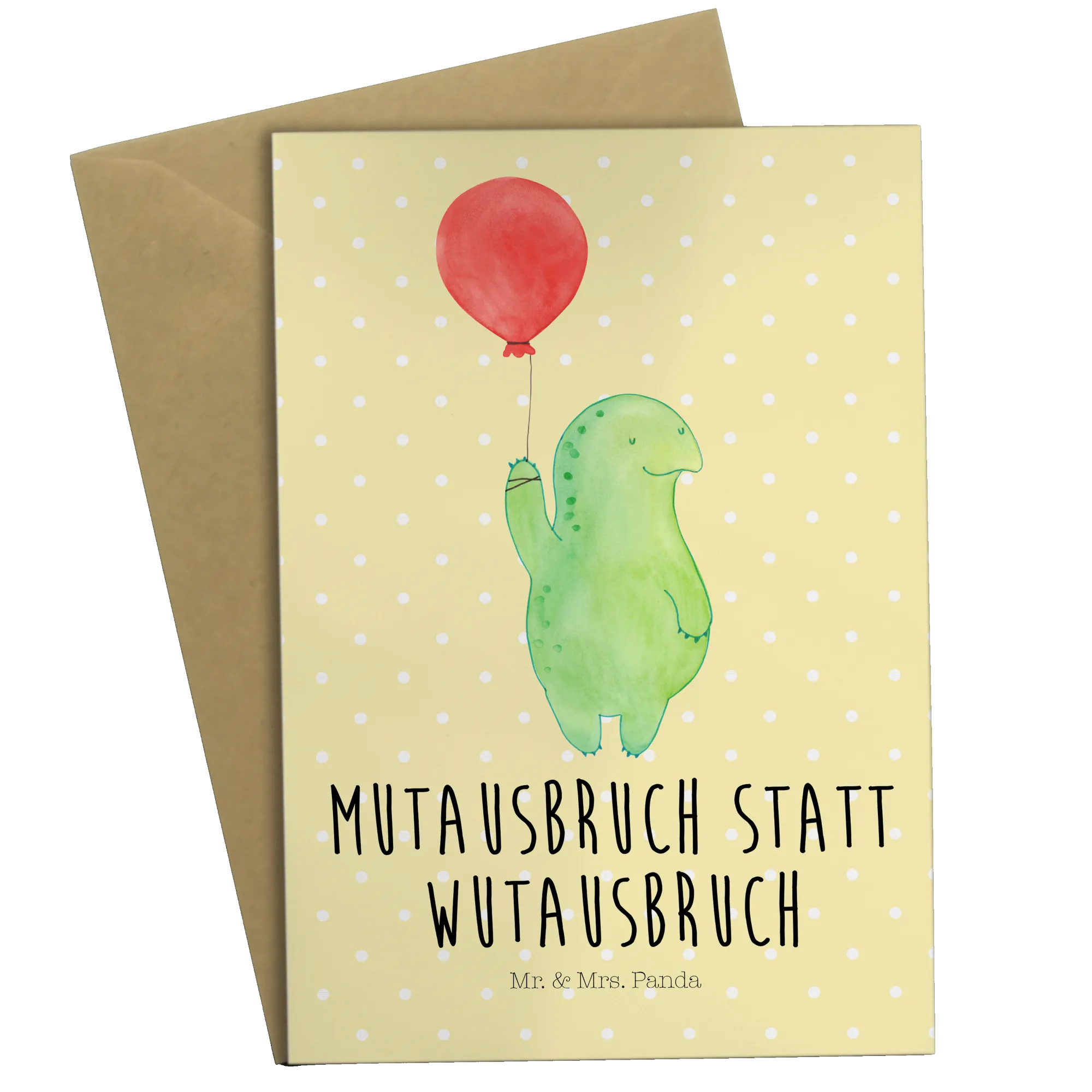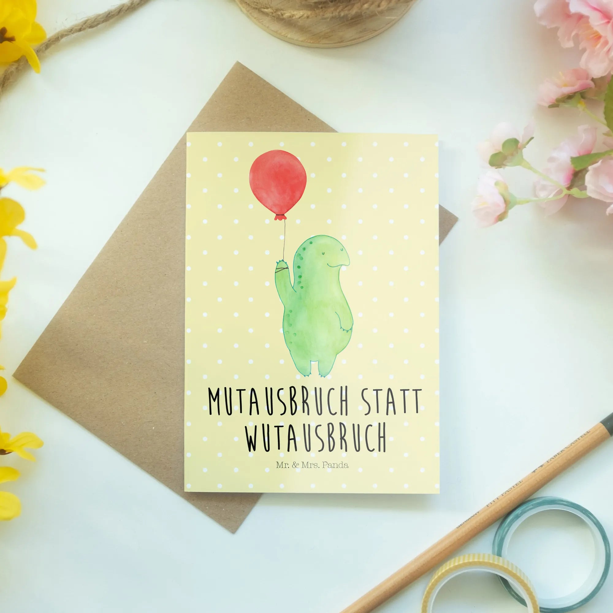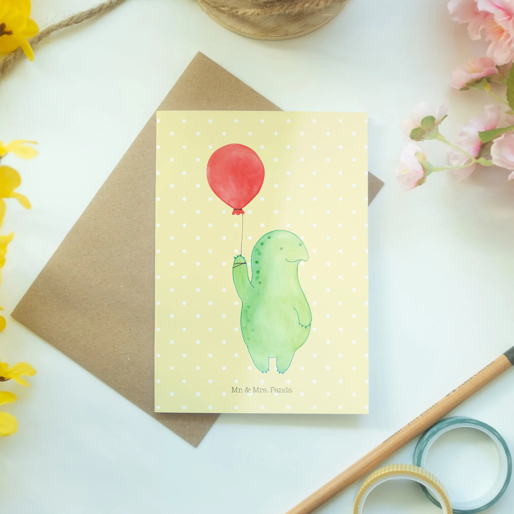 Greetings card tortoise balloon - with a saying - Pastel Yellow