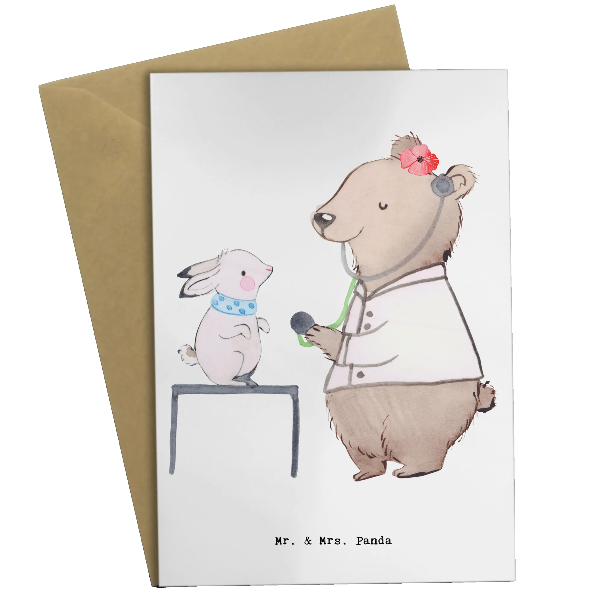 Imagine surprising a beloved veterinarian with a card that perfectly encapsulates their passion for animals! Whether it’s a birthday, wedding, or a special farewell gift, this card is designed to bring a smile to their face. The front showcases a cute female bear in a white coat tenderly caring for a rabbit, capturing the essence of what it means to be a veterinarian. It’s a wonderful reminder of their dedication to animal care and the incredible work they do.