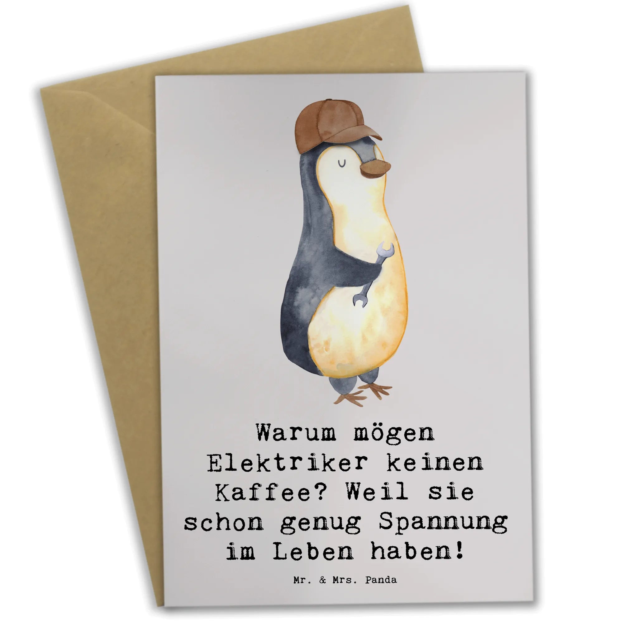 Greetings card Warum mögen Elektriker keinen Kaffee? Weil sie schon genug Spannung im Leben haben! - White