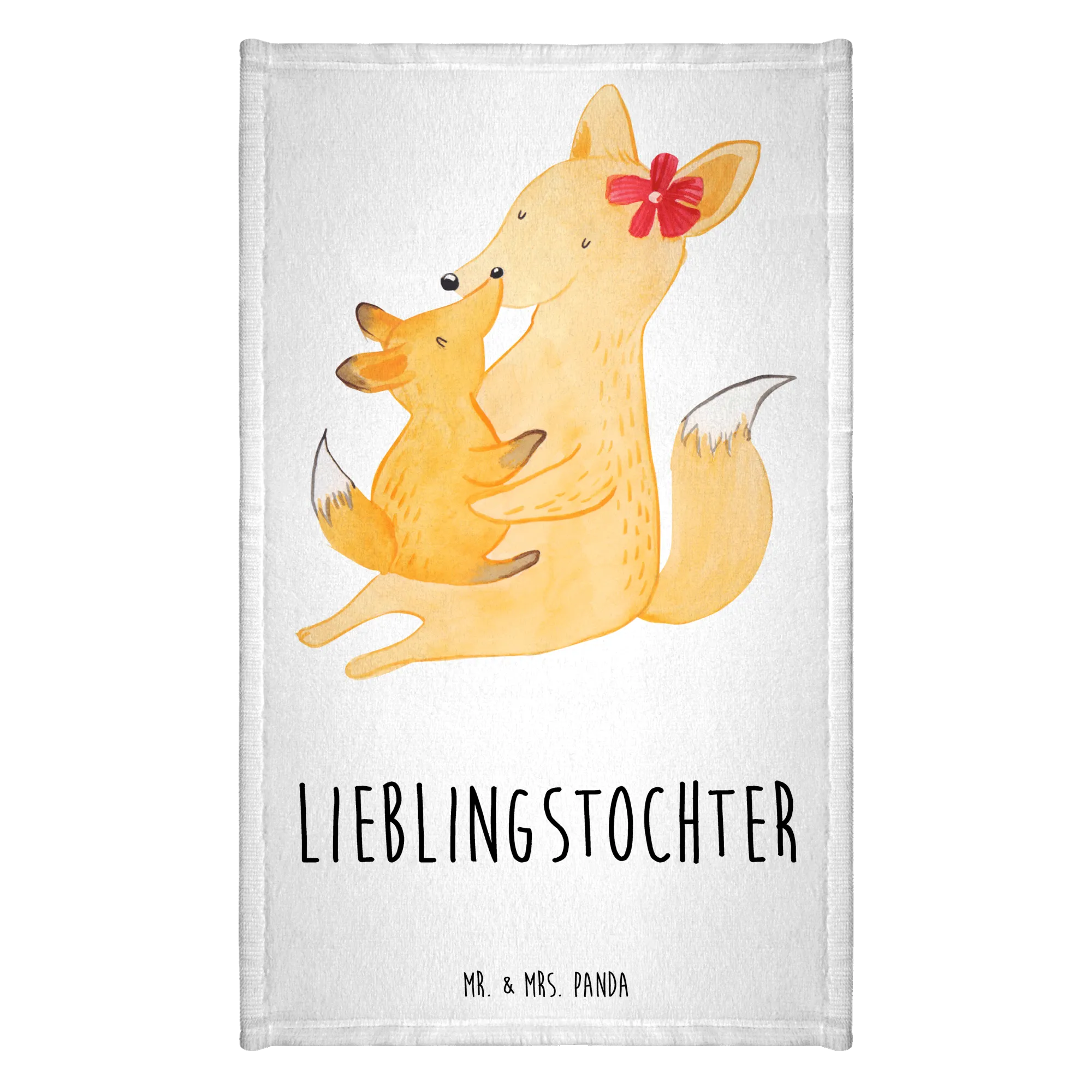 Crafted from a high-quality cotton blend, this towel is both fluffy and absorbent, ensuring a delightful drying experience. It showcases a beautifully hand-drawn illustration of a mother fox lovingly embracing her little fox, radiating feelings of tenderness and devotion. The warm yellow-orange hues beautifully complement the white accents, while the charming red flower behind the mother’s ear adds a lovely family-oriented touch. It makes you smile every time you reach for it!