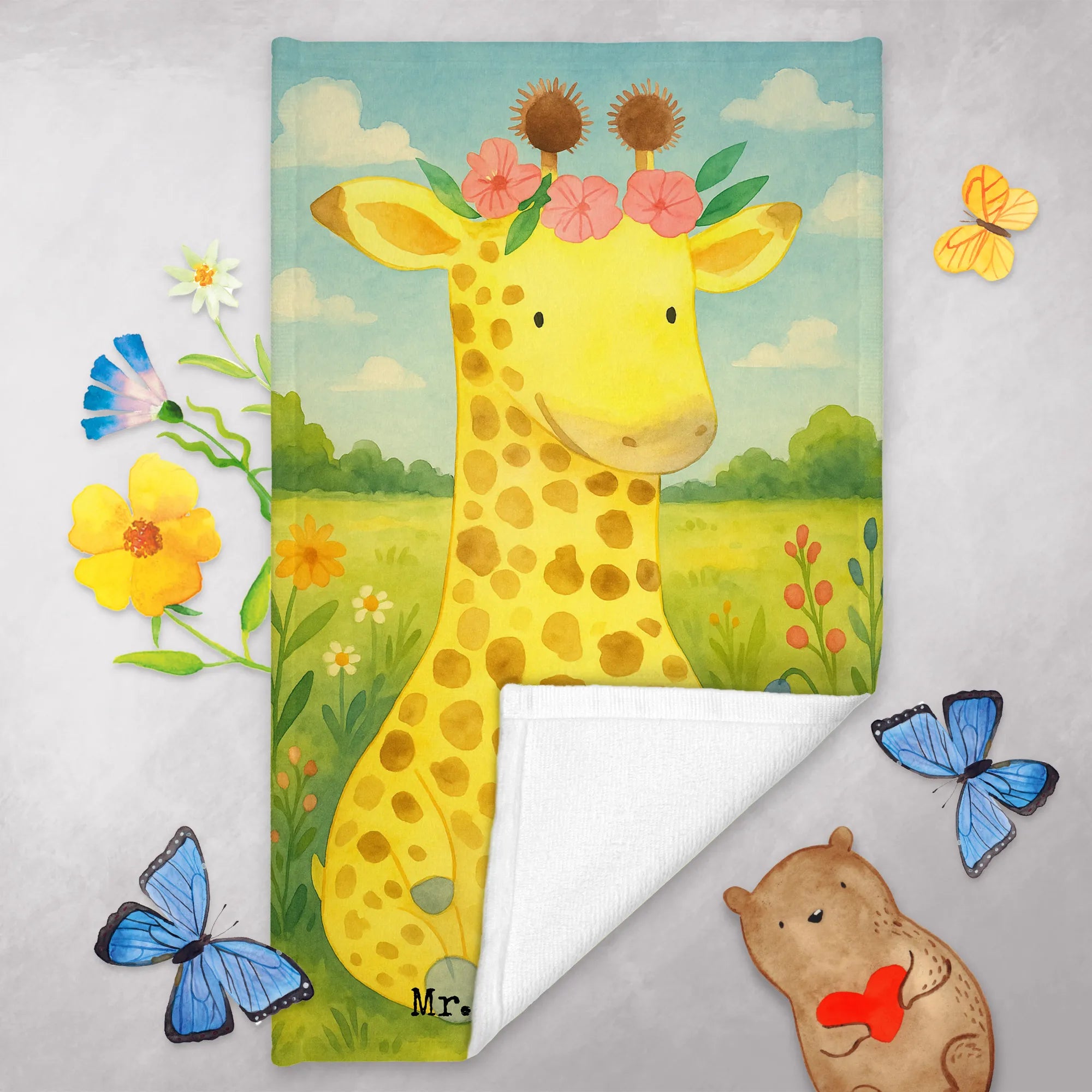 Guest towel giraffe flower wreath Design – Mr. & Mrs. Panda