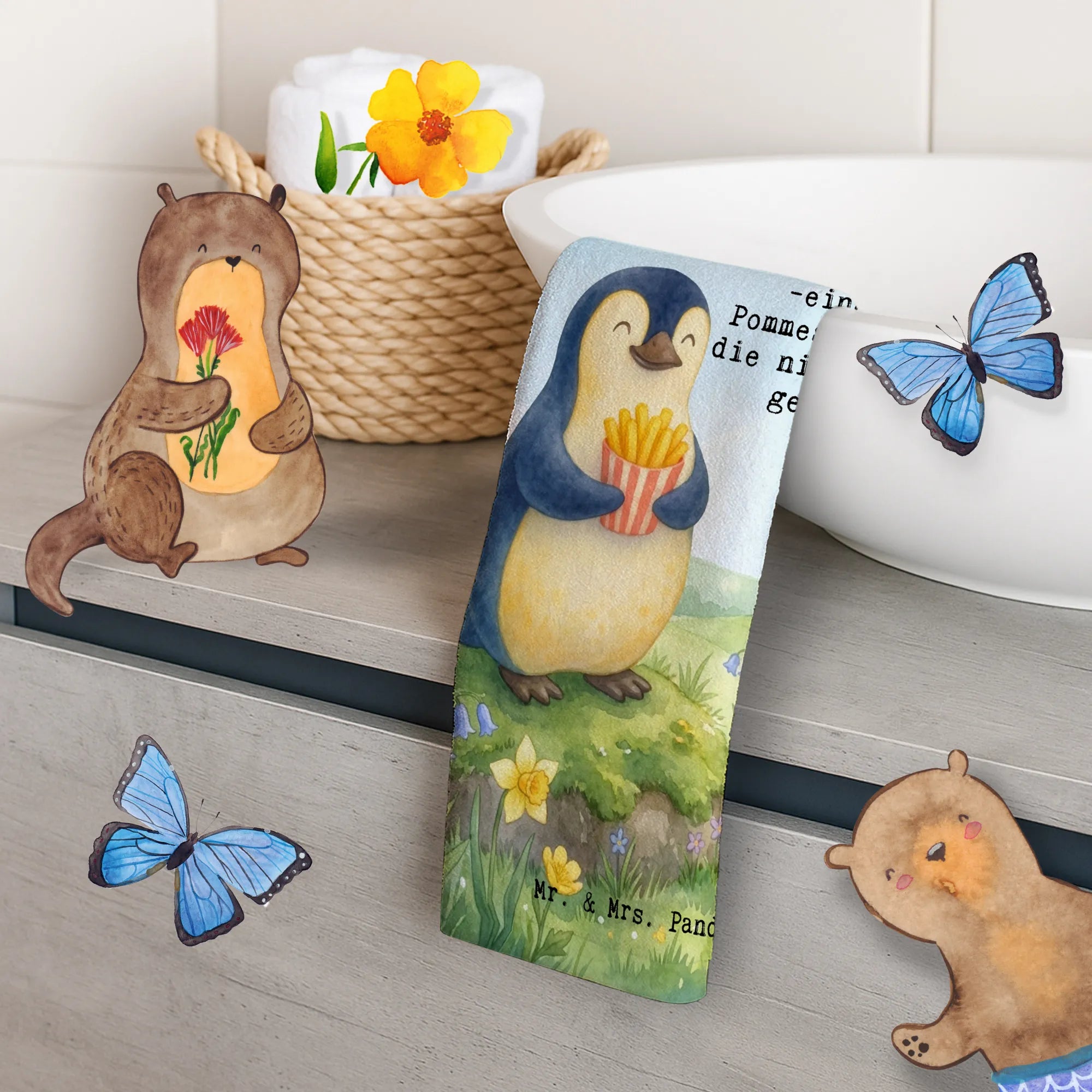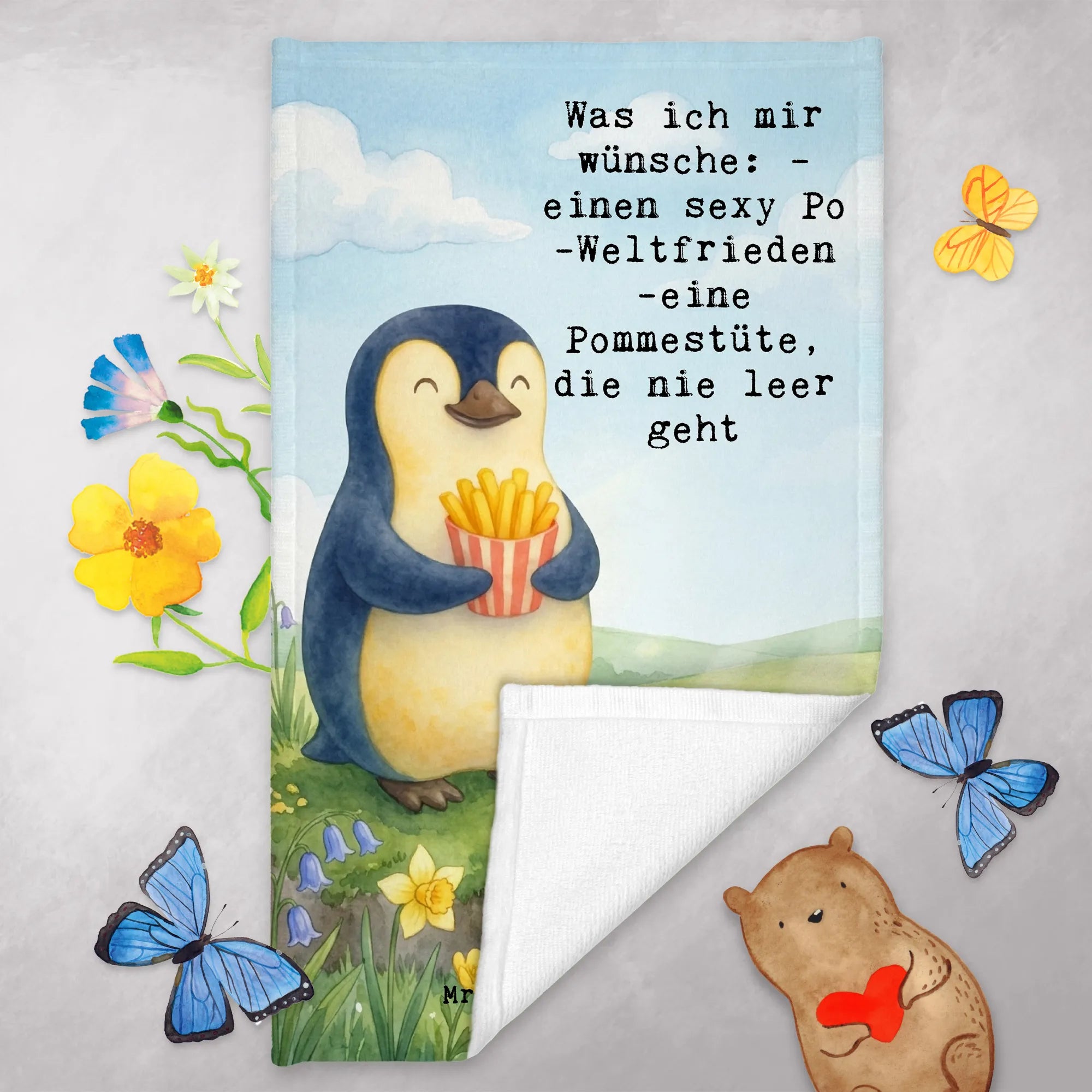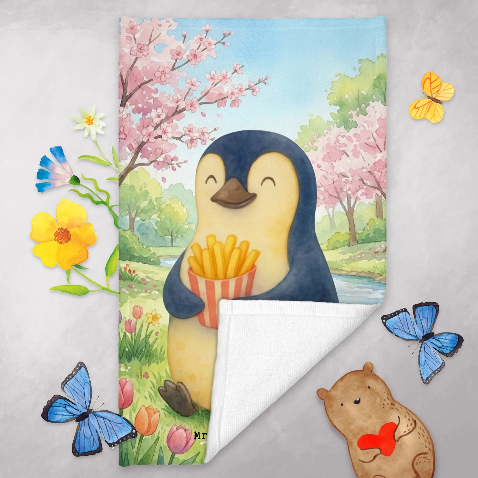 Guest towel Pinguin Frühling Pommes Design - with saying