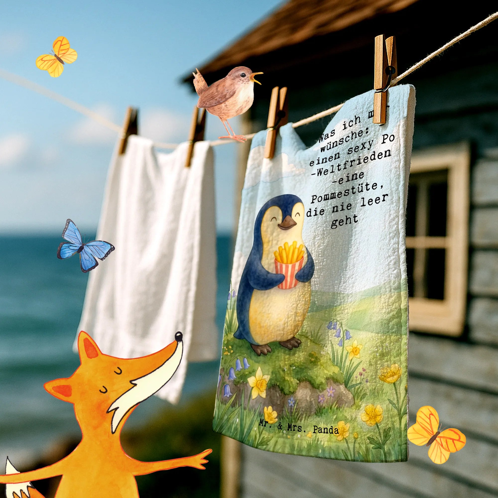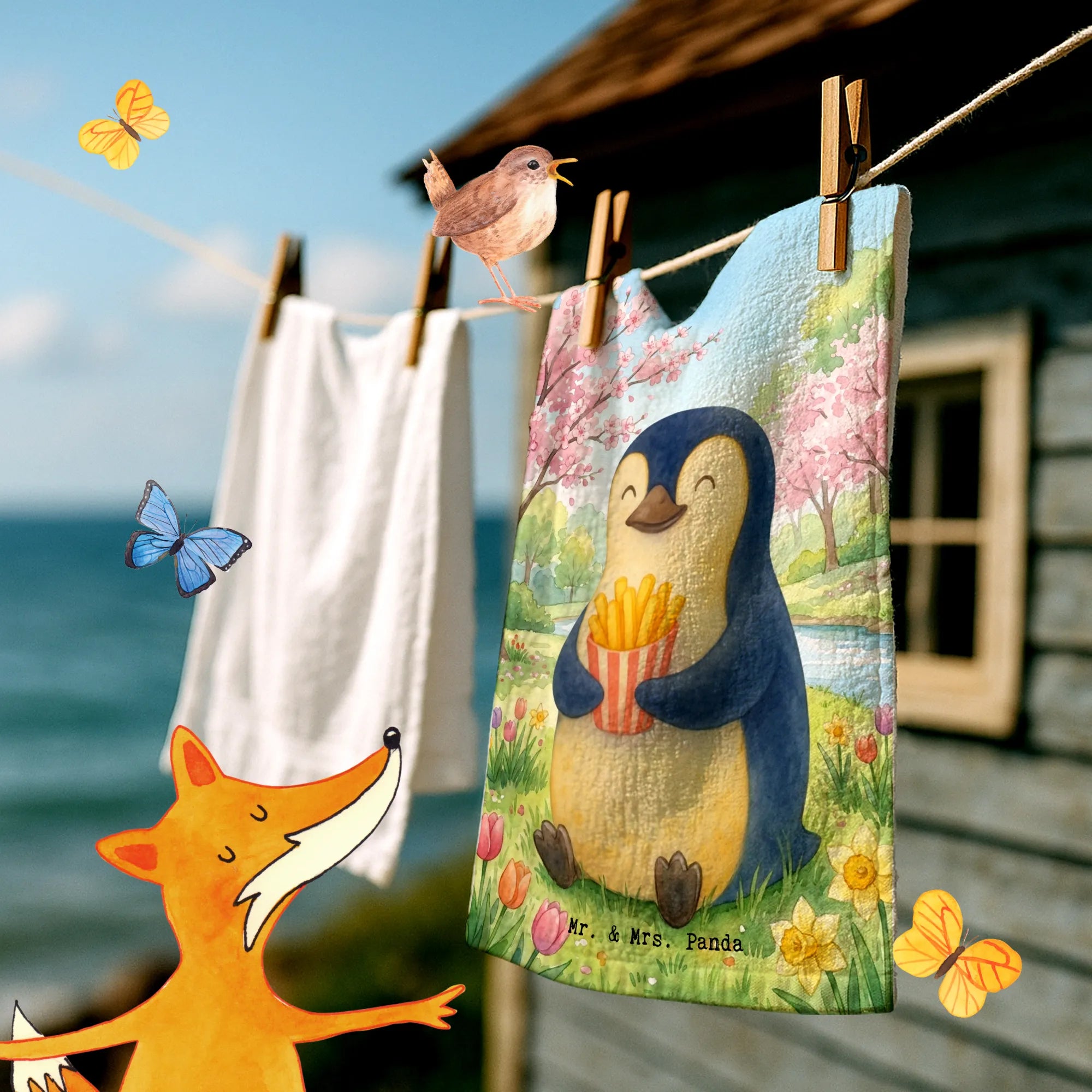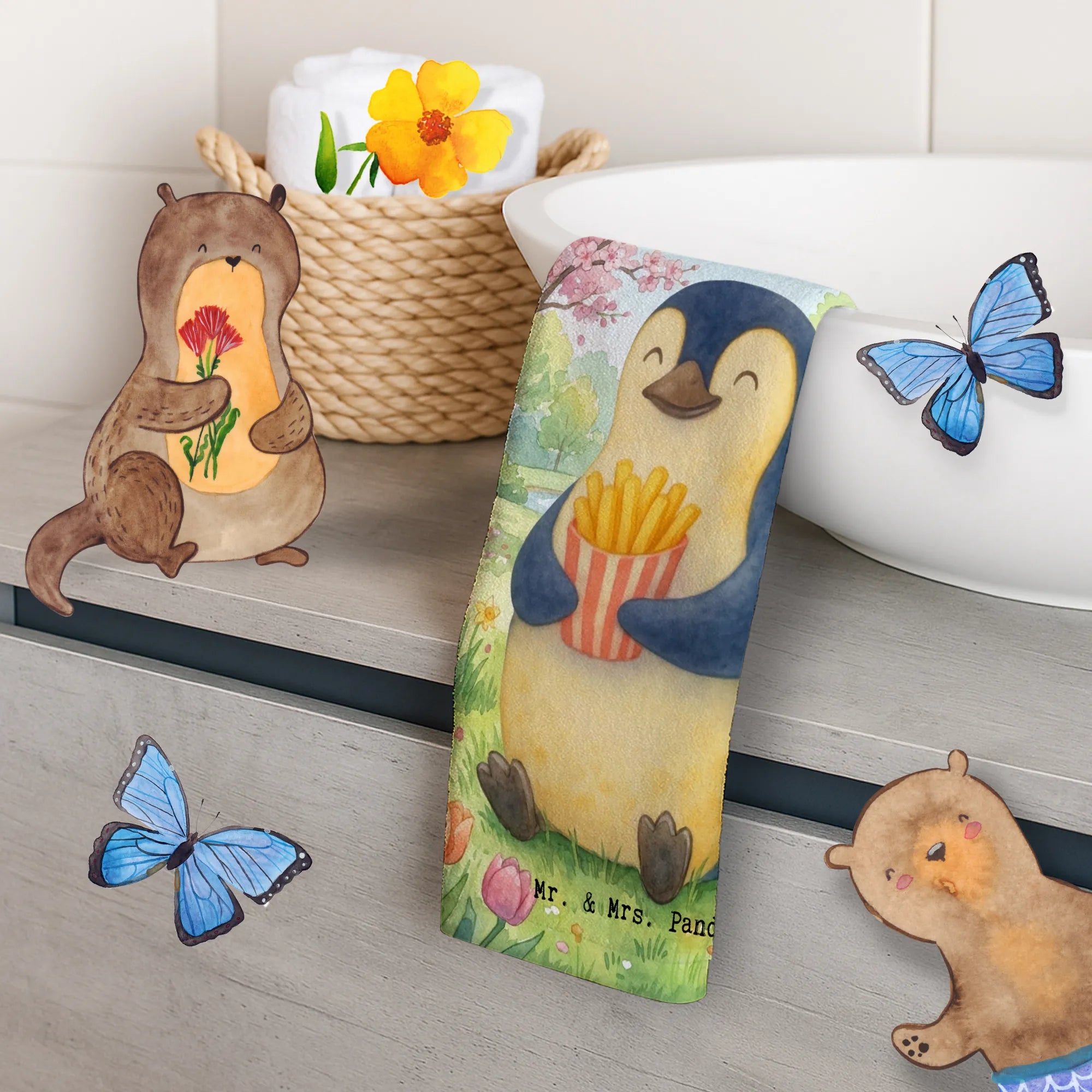 Guest towel Pinguin Frühling Pommes Design - with saying