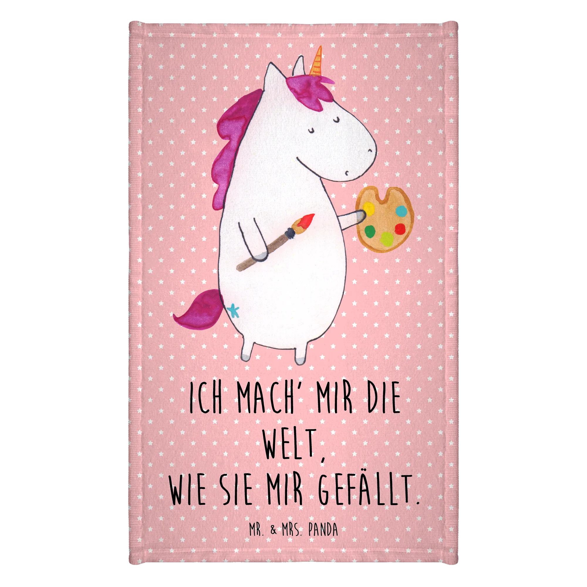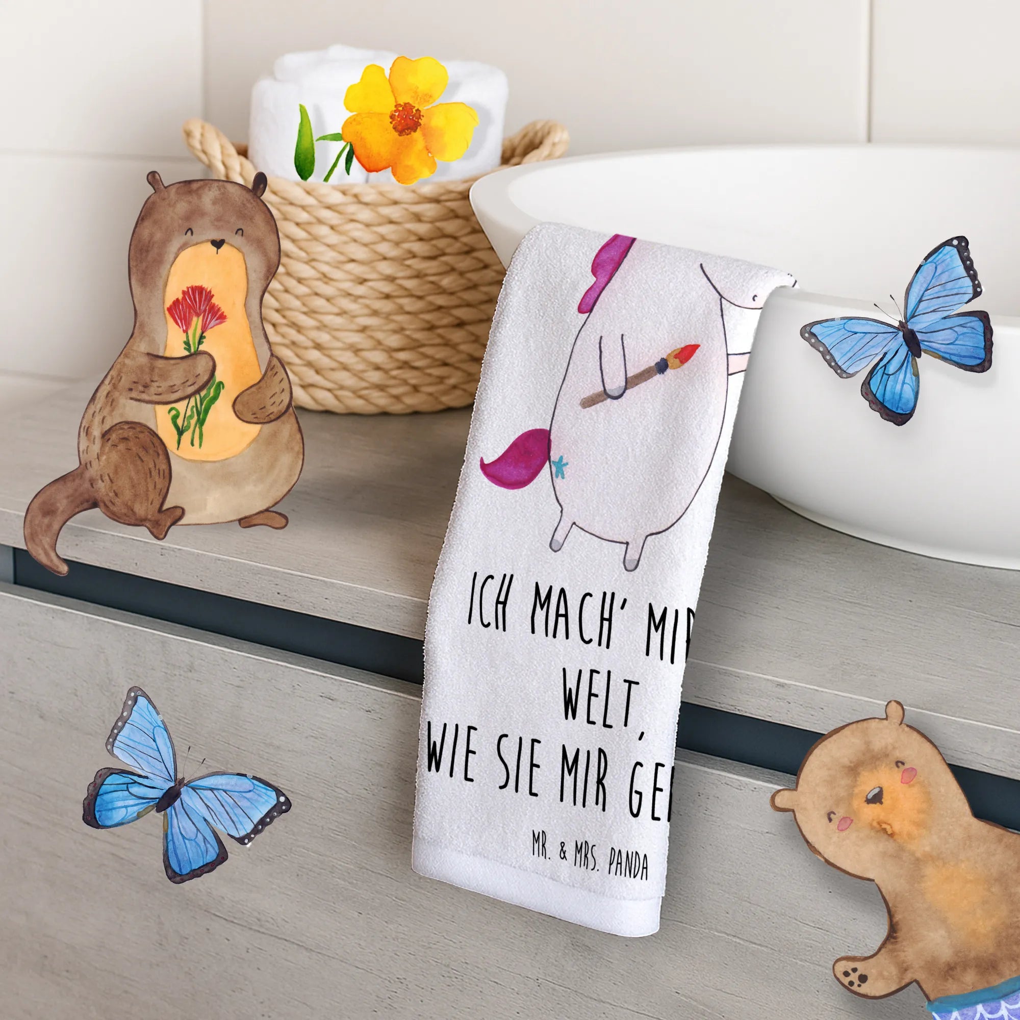 The Unicorn Artist motif is particularly special, featuring a cute unicorn painting at an easel, splashed with vibrant colors that spark imagination and joy. Who wouldn't want to brighten their world in the way that this enchanting unicorn does? With the heartfelt slogan "Ich mach' mir die Welt, wie sie mir gefällt," this towel speaks volumes about the creative spirit we all possess. It’s an original saying that captures the essence of artistic freedom, making it a thoughtful gift for artists, dreamers, and anyone who loves to express themselves.