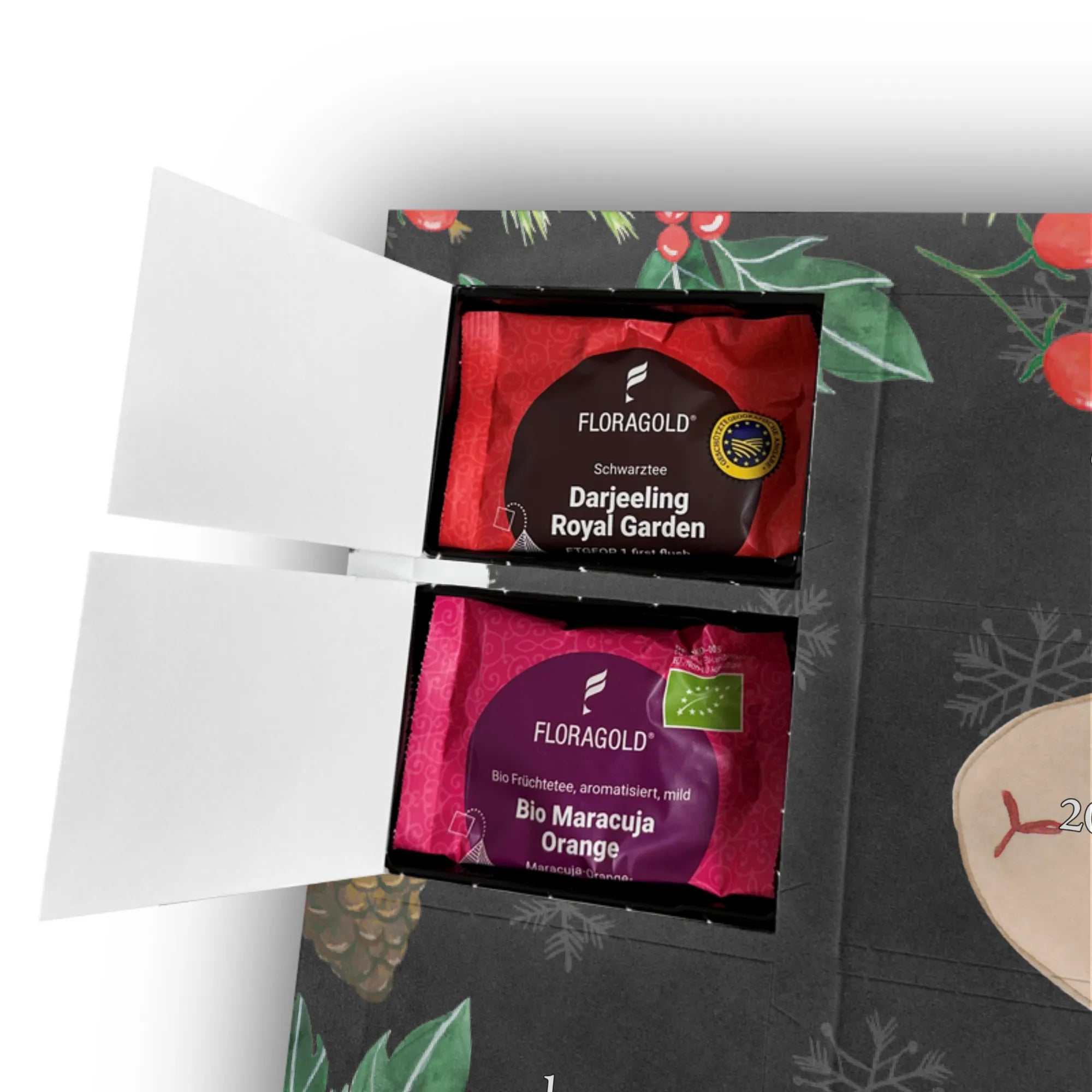 Discover the world of flavors with our Personalized Tea Advent Calendar from Mr. & Mrs. Panda. Printed with unique designs and heartfelt sayings, this calendar offers the opportunity to customize it with your own desired text or name. Brilliantly printed with a silk-matte finish, this Advent calendar becomes the highlight of your pre-Christmas decorations. Featuring 24 individually wrapped premium teas in pyramid sachets – including fruit tea, black tea, and herbal tea – this calendar invites you on a new taste journey each day.