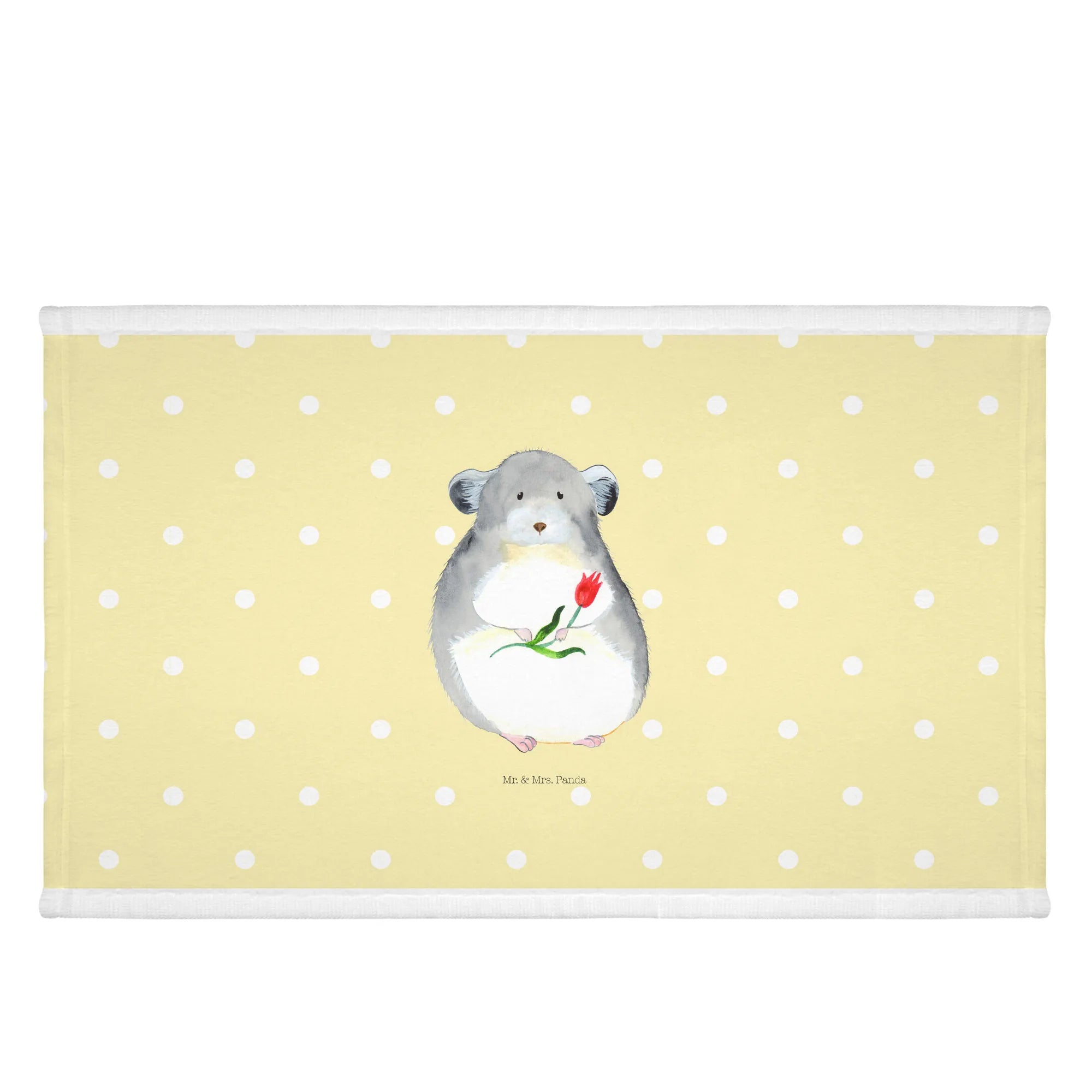 Are you on the lookout for a delightful gift that speaks volumes of charm and affection? Look no further! The Mr. & Mrs. Panda Guest Towel featuring our adorable Chinchilla with Flower design is the perfect addition to any bathroom or guest restroom. Measuring a convenient 50 x 30 cm, this fluffy cotton blend towel is not only practical but also serves as a wonderful decor piece.