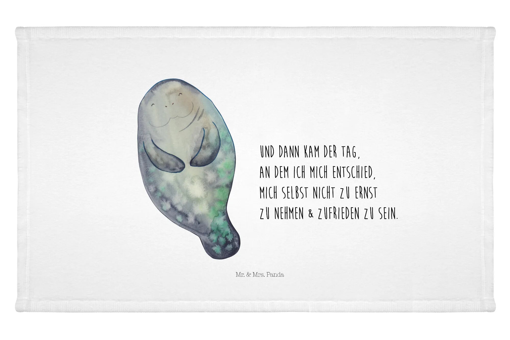 Hand towel manatee happy - 50 x 100 Towel - with a saying - White