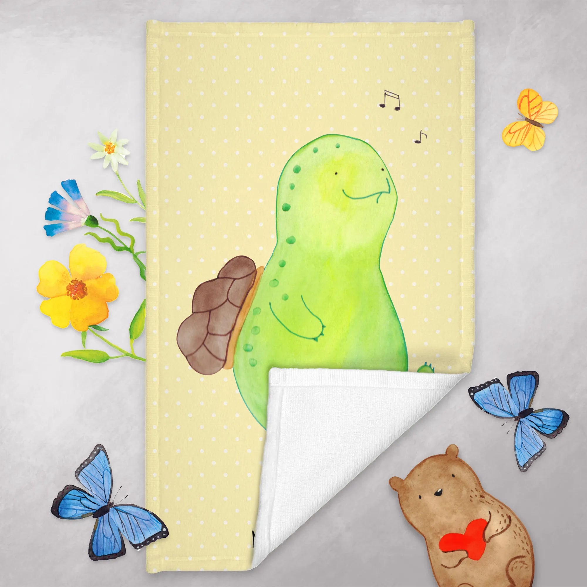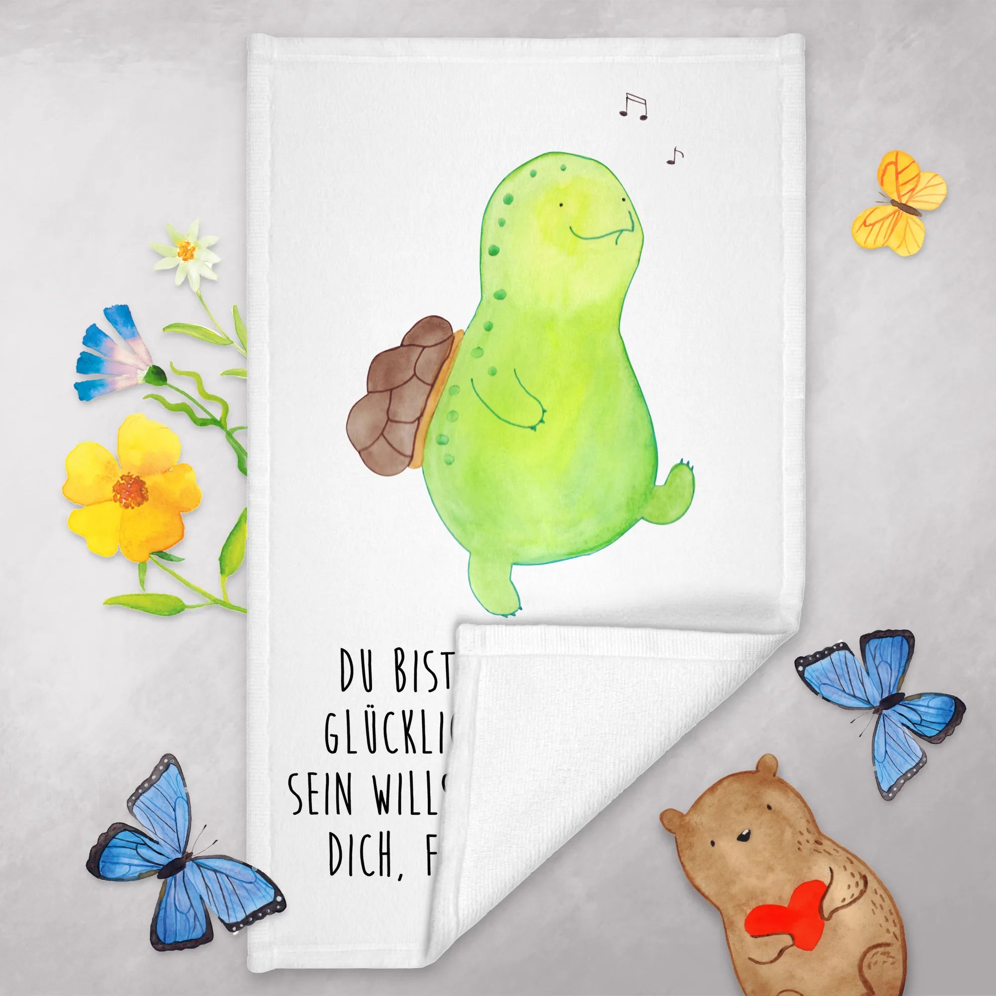Introducing our delightful Whistling Turtle Guest Towel from Mr. & Mrs. Panda's charming Turtle collection! 🎉 This wonderfully illustrated hand towel is not just a practical accessory for your bathroom or guest room, but a heartfelt reminder that happiness comes from within. Each time you see the cute whistling turtle, you're reminded of joy and a positive outlook on life!