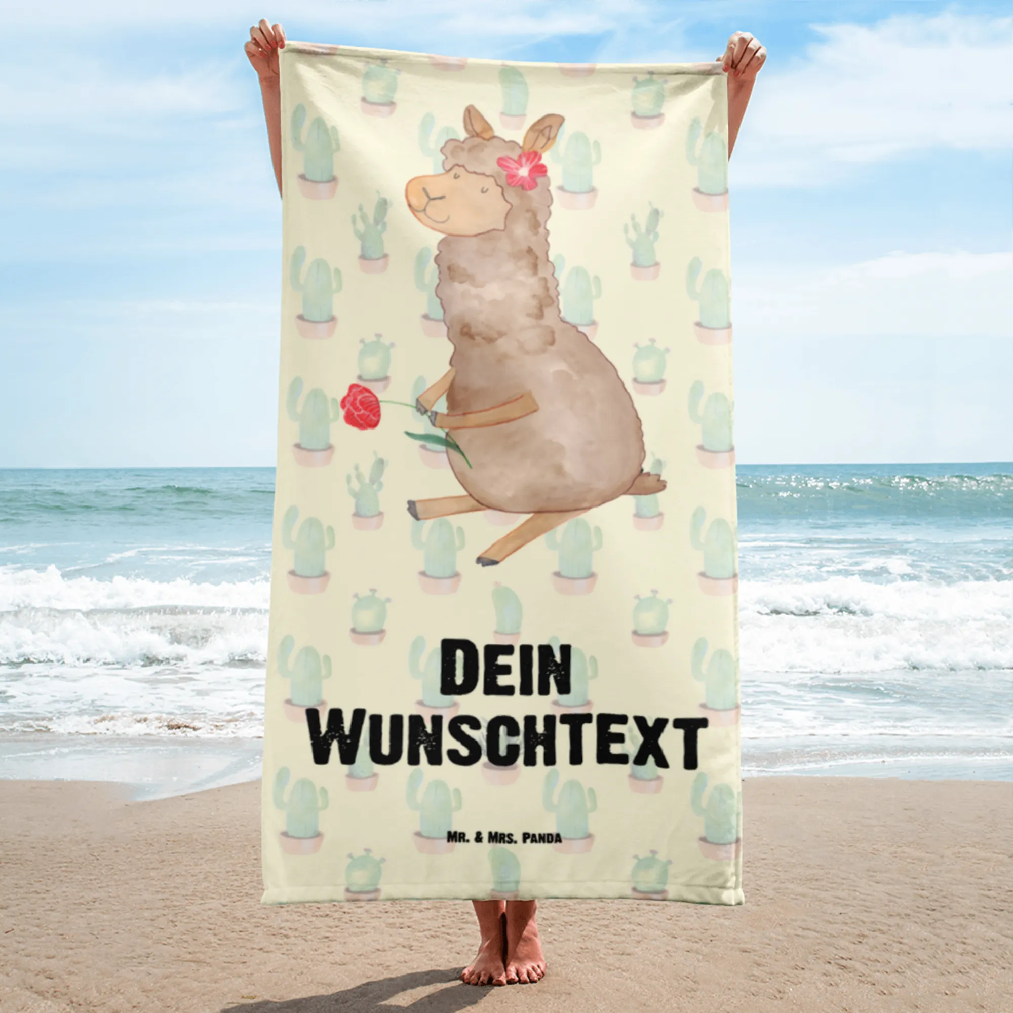 Hand towel with name alpaca flower