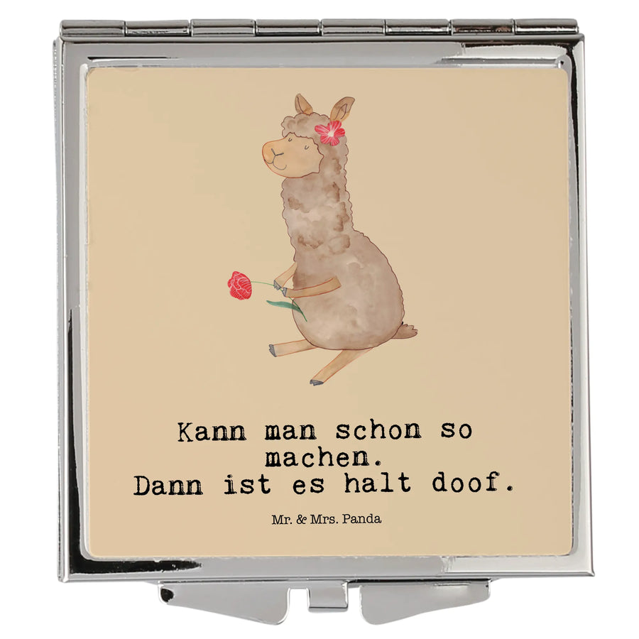 Handbag mirror alpaca flower - with a saying - Cactus Green