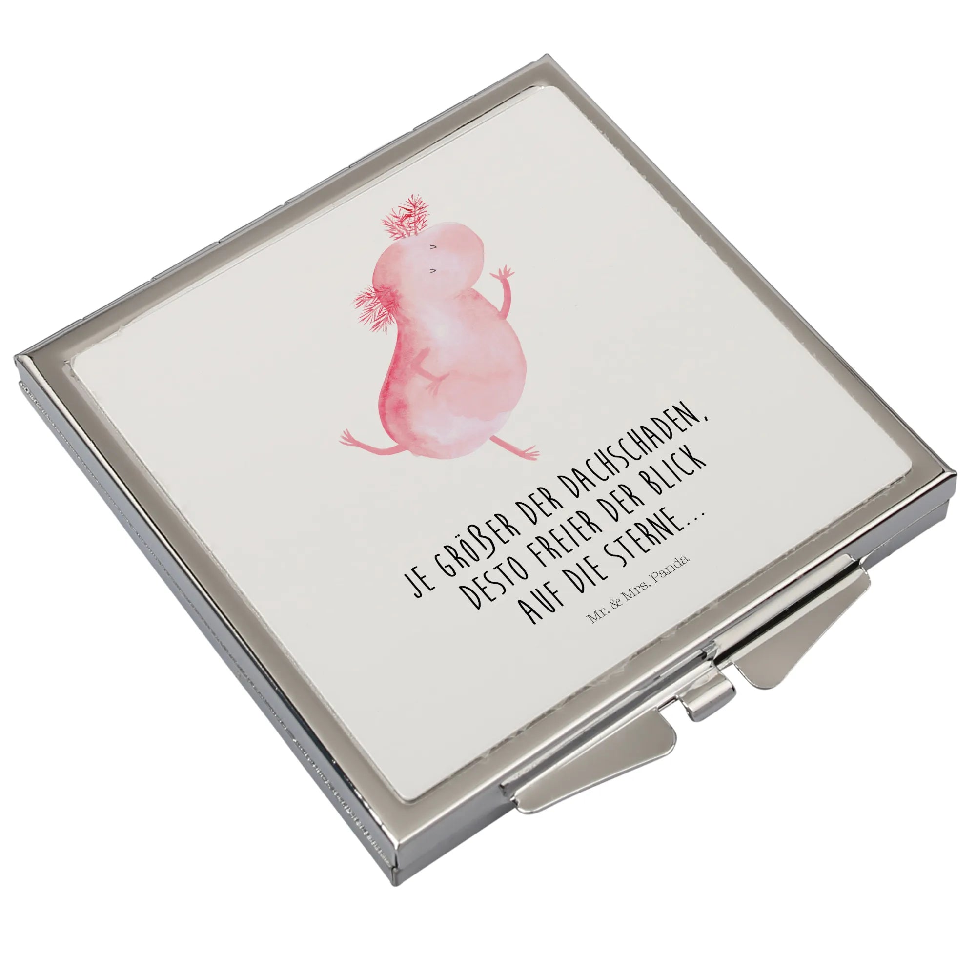 Handbag mirror axolotl Dance - with a saying - White