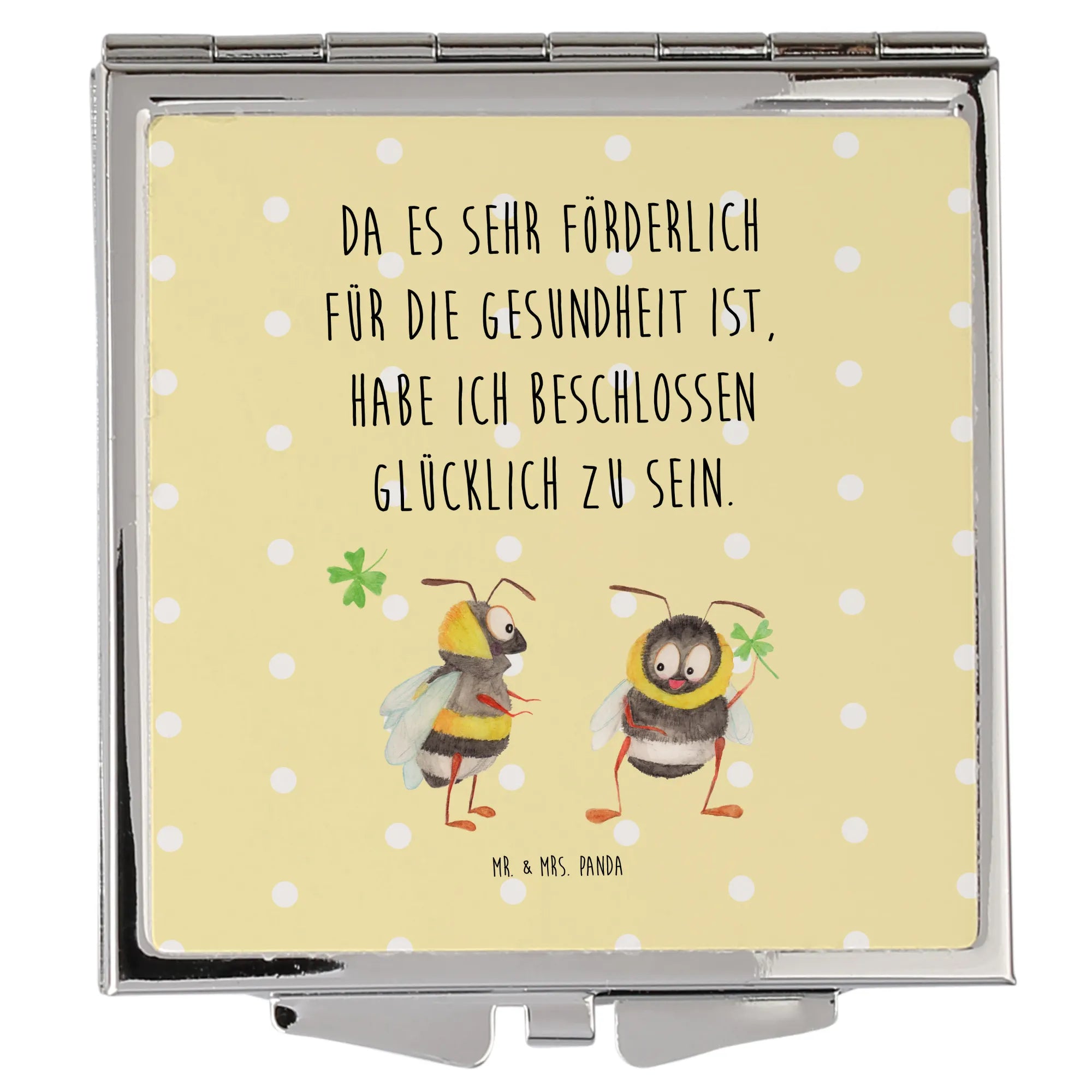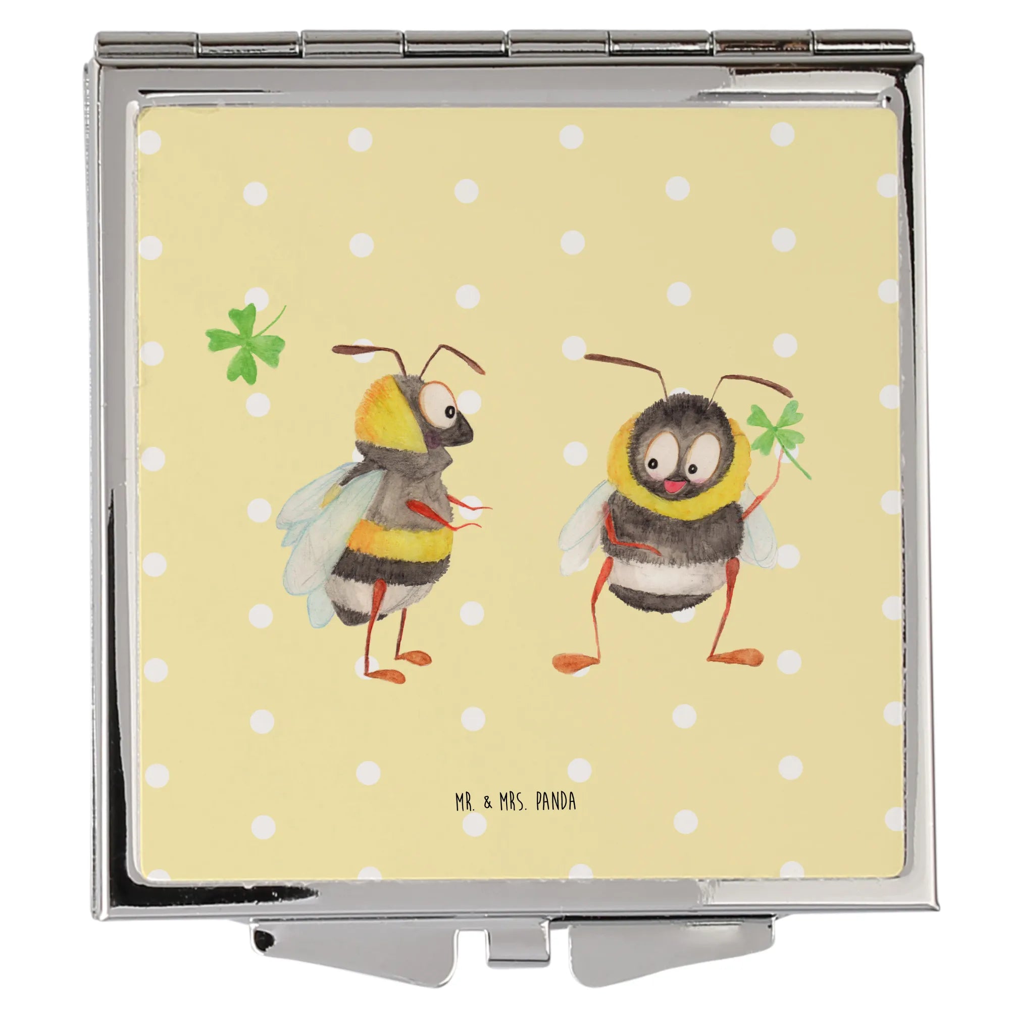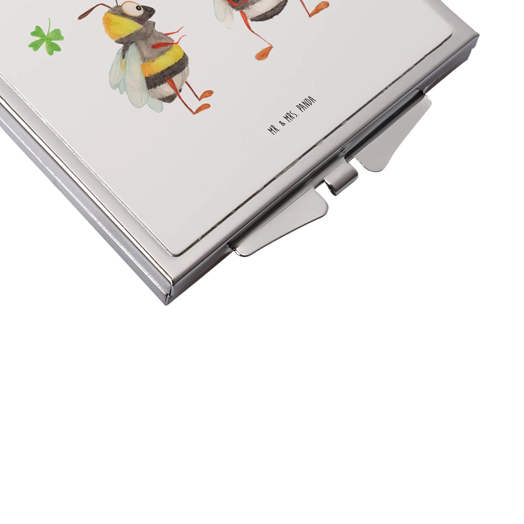 Handbag mirror bumblebees shamrock - with saying - White