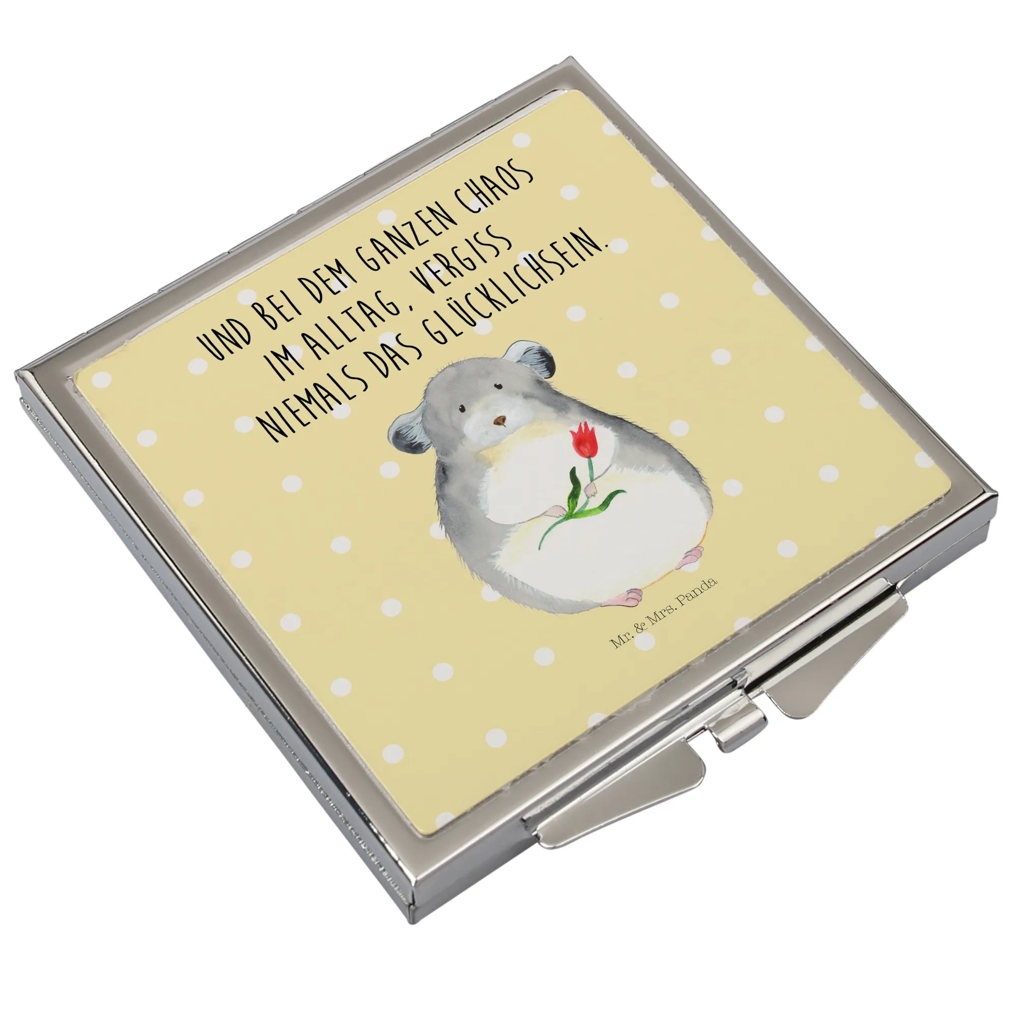 Handbag mirror chinchilla flower - with saying - Pastel Yellow