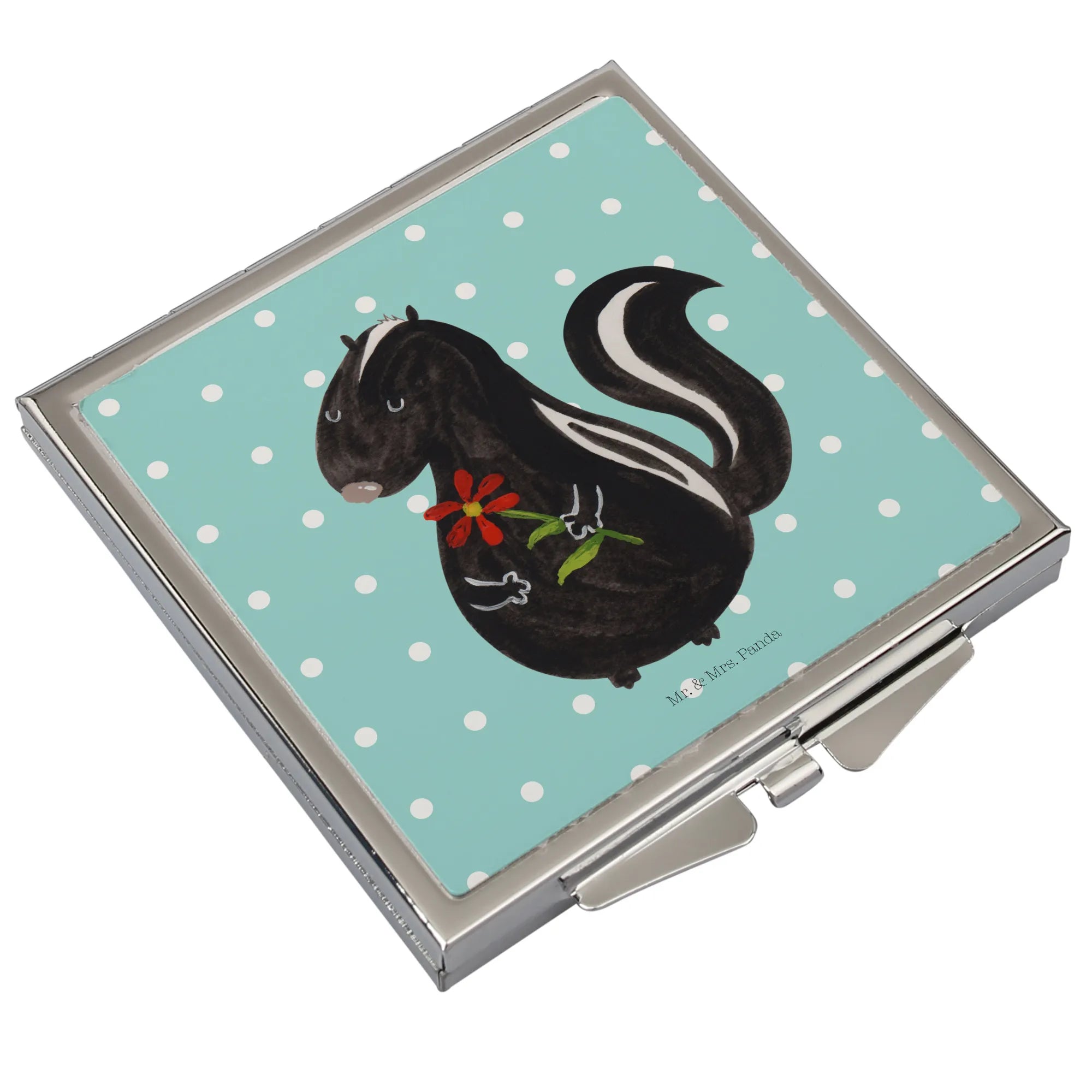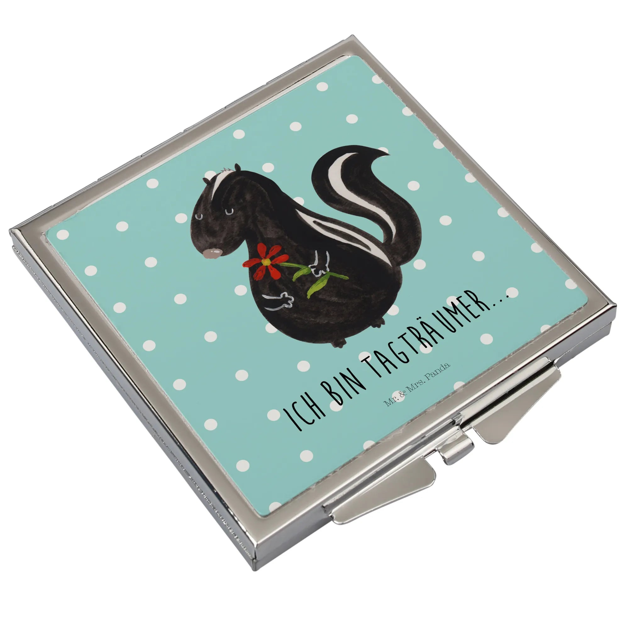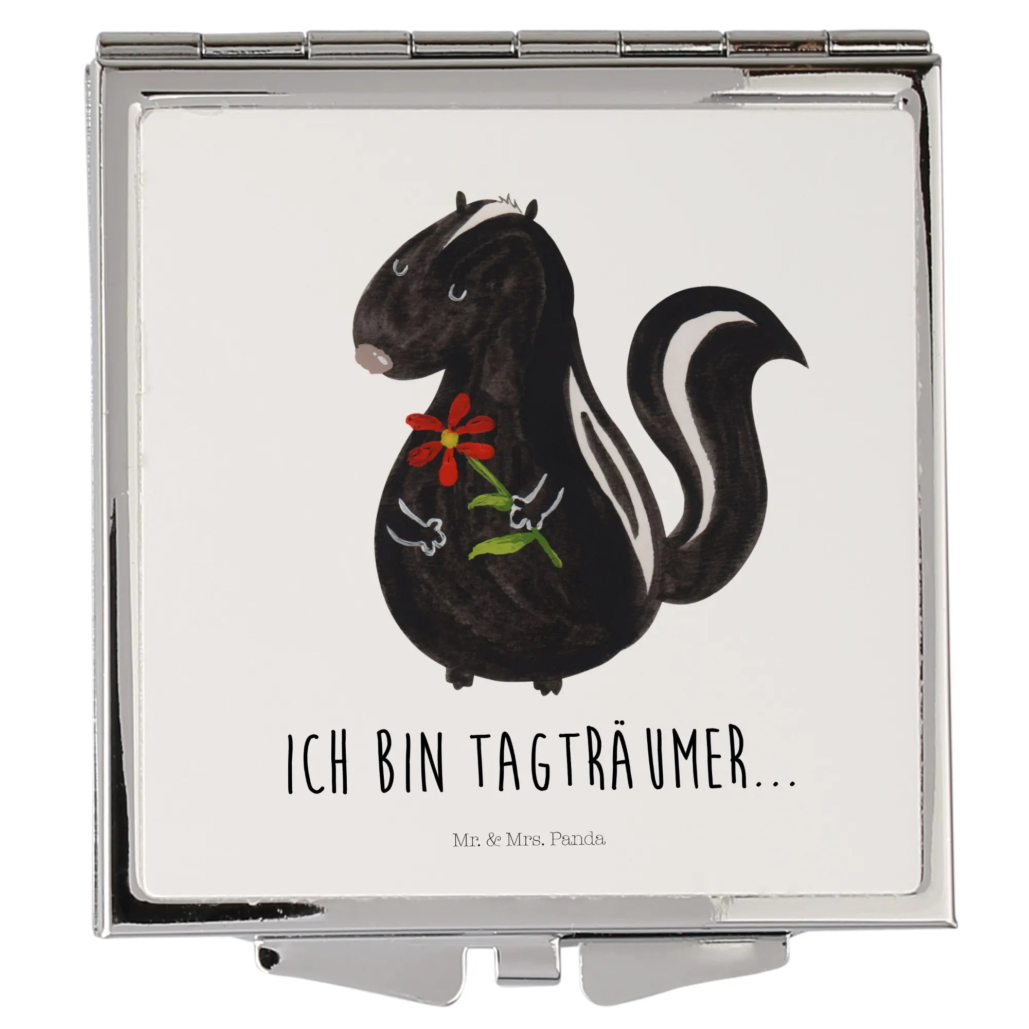 Handbag mirror skunk flower - with saying - White