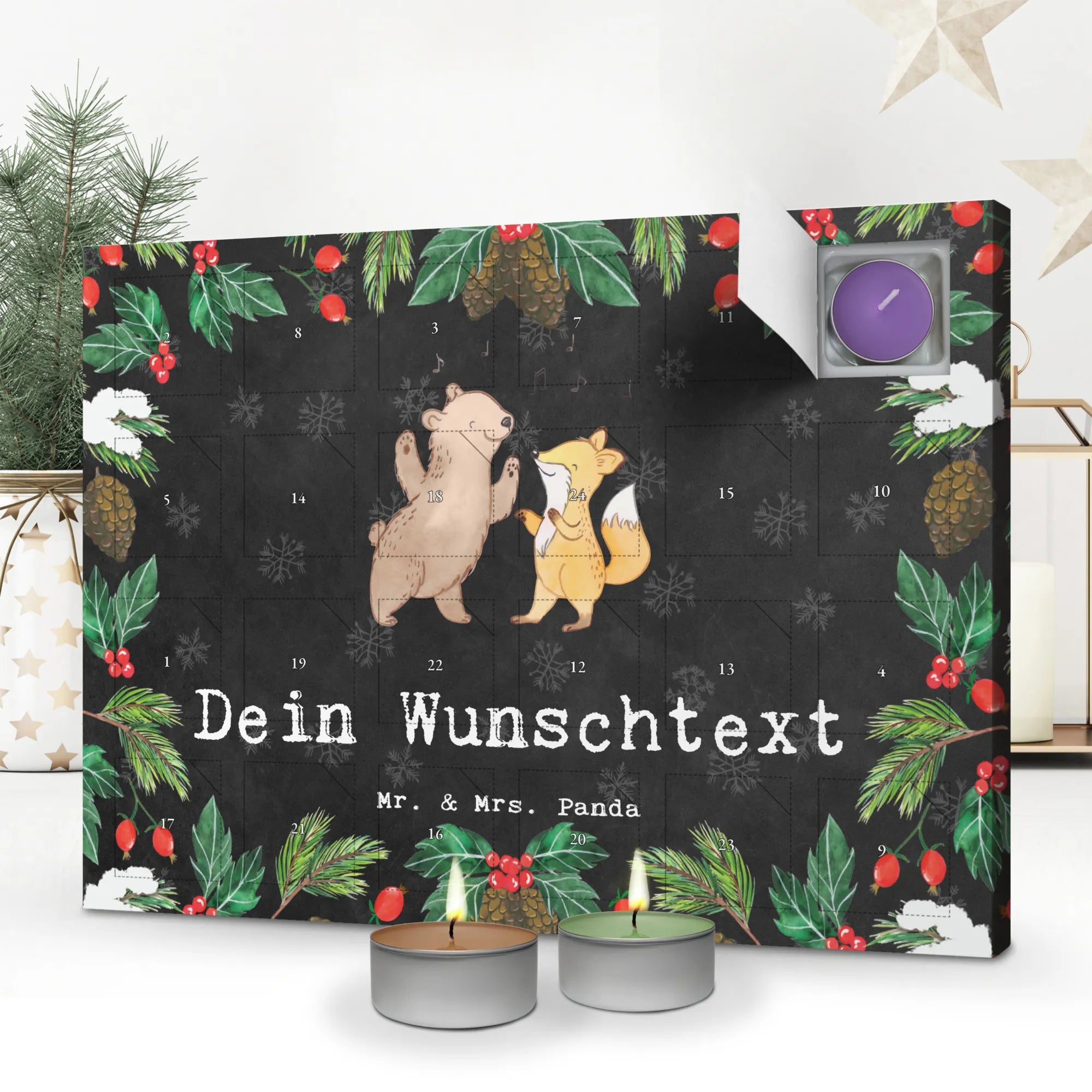 Schenke Vorfreude: Bestell jetzt den Duftkerzen Adventskalender personalisiert mit Mrs. Panda Motiv und mache die Adventszeit unvergesslich!
