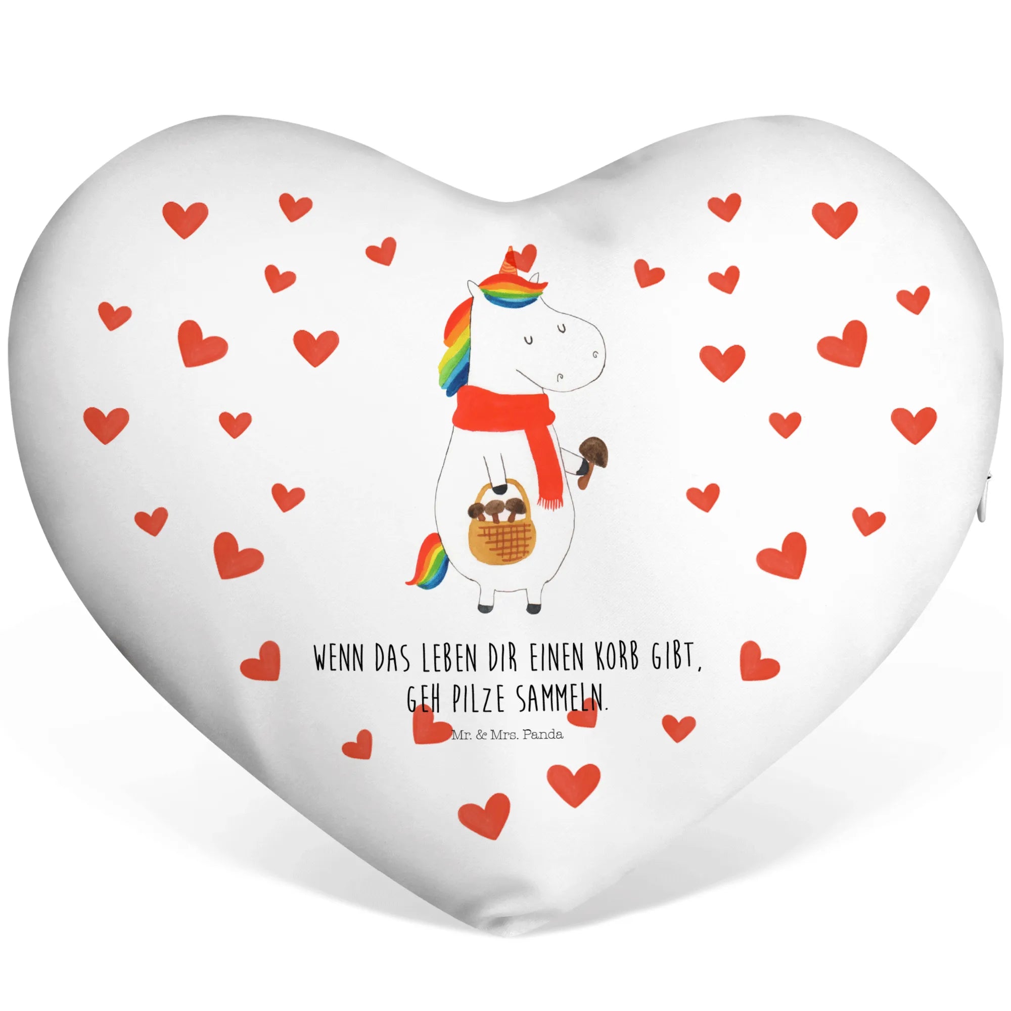 If you're searching for the perfect gift that radiates warmth and joy, look no further than the Heart Cushion with the enchanting Unicorn Mushroom motif from our special Unicorn Collection! This delightful cushion is not just any ordinary pillow; it’s a whimsical creation that features a charming unicorn exploring a magical forest in search of mushrooms. Hand-drawn with love by Mrs. Panda, this unique design is sure to captivate the hearts of anyone who sees it.