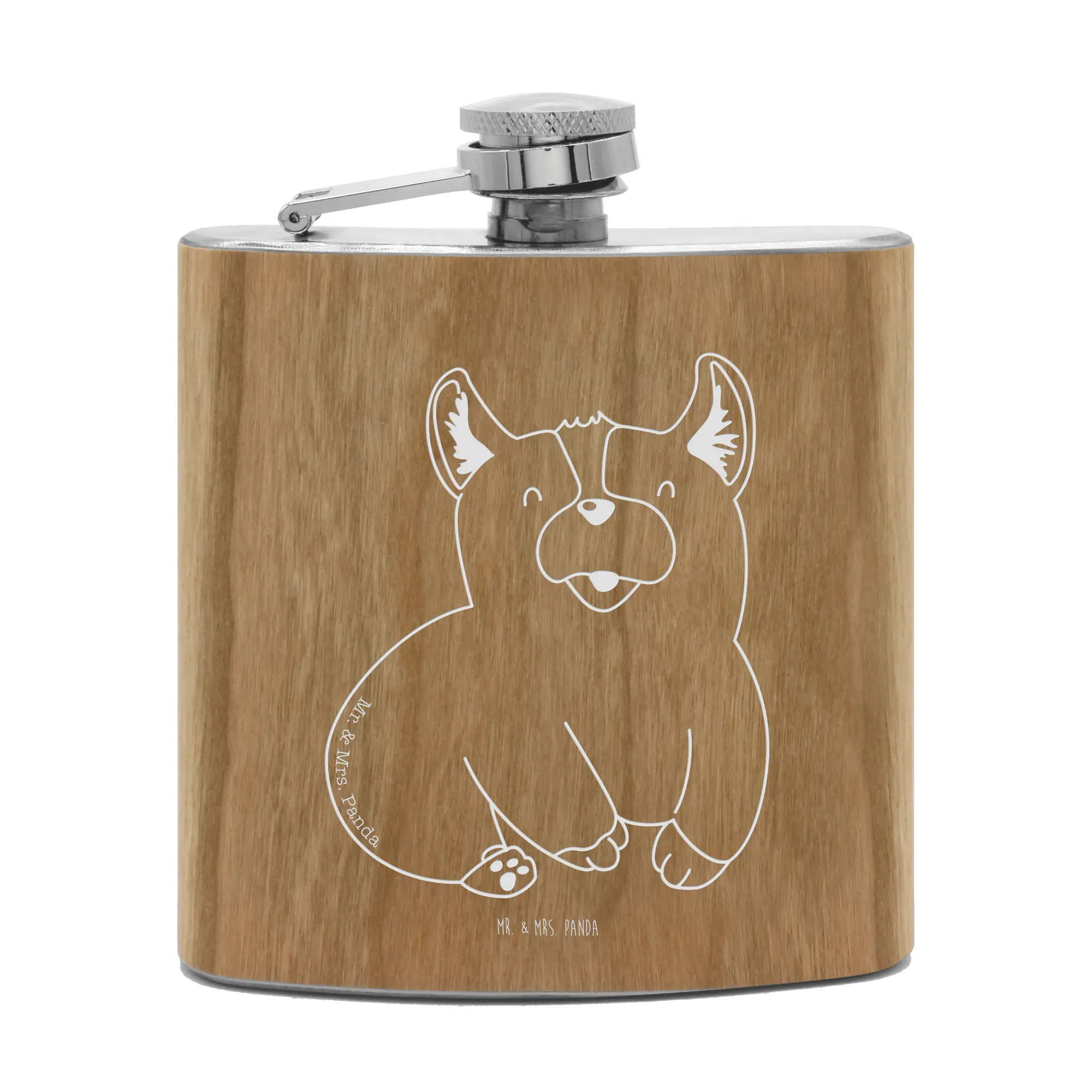 Entdecke den perfekten Flachmann von Mr. & Mrs. Panda, der nicht nur funktional, sondern auch absolut bezaubernd ist! Mit seinem einzigartigen Corgie-Motiv wird dieser hochwertige Edelstahl-Flachmann zum idealen Begleiter für jede Gelegenheit. Egal, ob beim Junggesellenabschied, bei einem Ausflug in die Natur oder einfach nur, um deinen liebsten Drink bei dir zu haben – dieser Flachmann ist superleicht und liegt dank seines durchdachten Designs angenehm in der Hand.