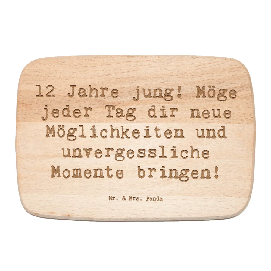 Das Frühstücksbrett von Mr. & Mrs. Panda ist das ideale Geschenk zum 12. Geburtstag! Es verbindet Funktionalität mit einer liebevollen Botschaft, die jeden Morgen ein Lächeln ins Gesicht zaubert. Mit dem Slogan „12 Jahre jung! Möge jeder Tag dir neue Möglichkeiten und unvergessliche Momente bringen!“ gepaart mit einem zauberhaften Design, wird dieses Brettchen garantiert zum Lieblingsstück in der Küche.