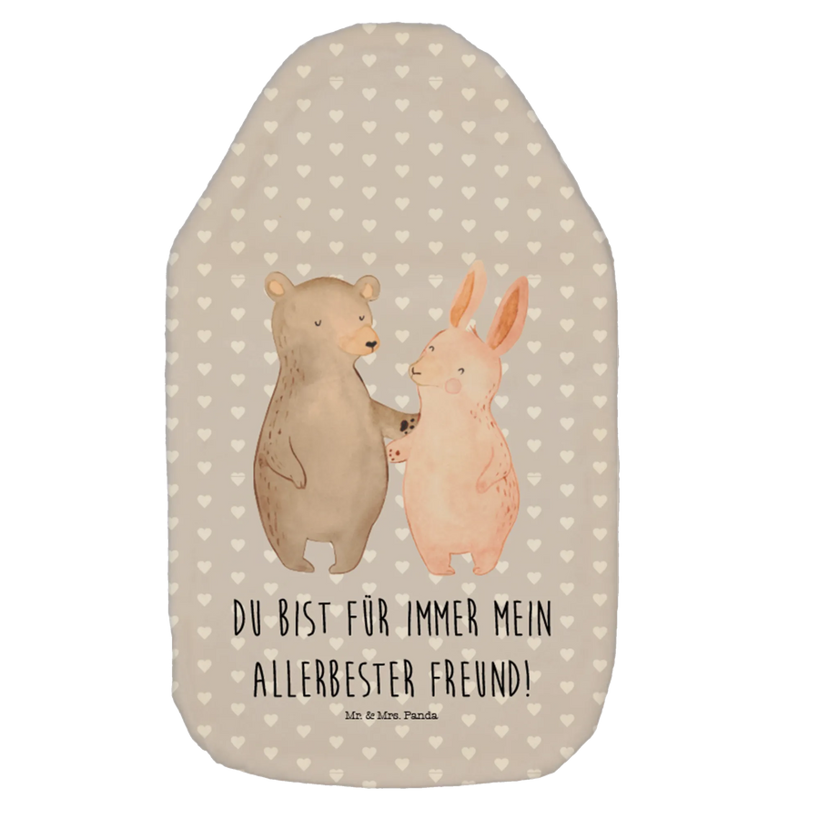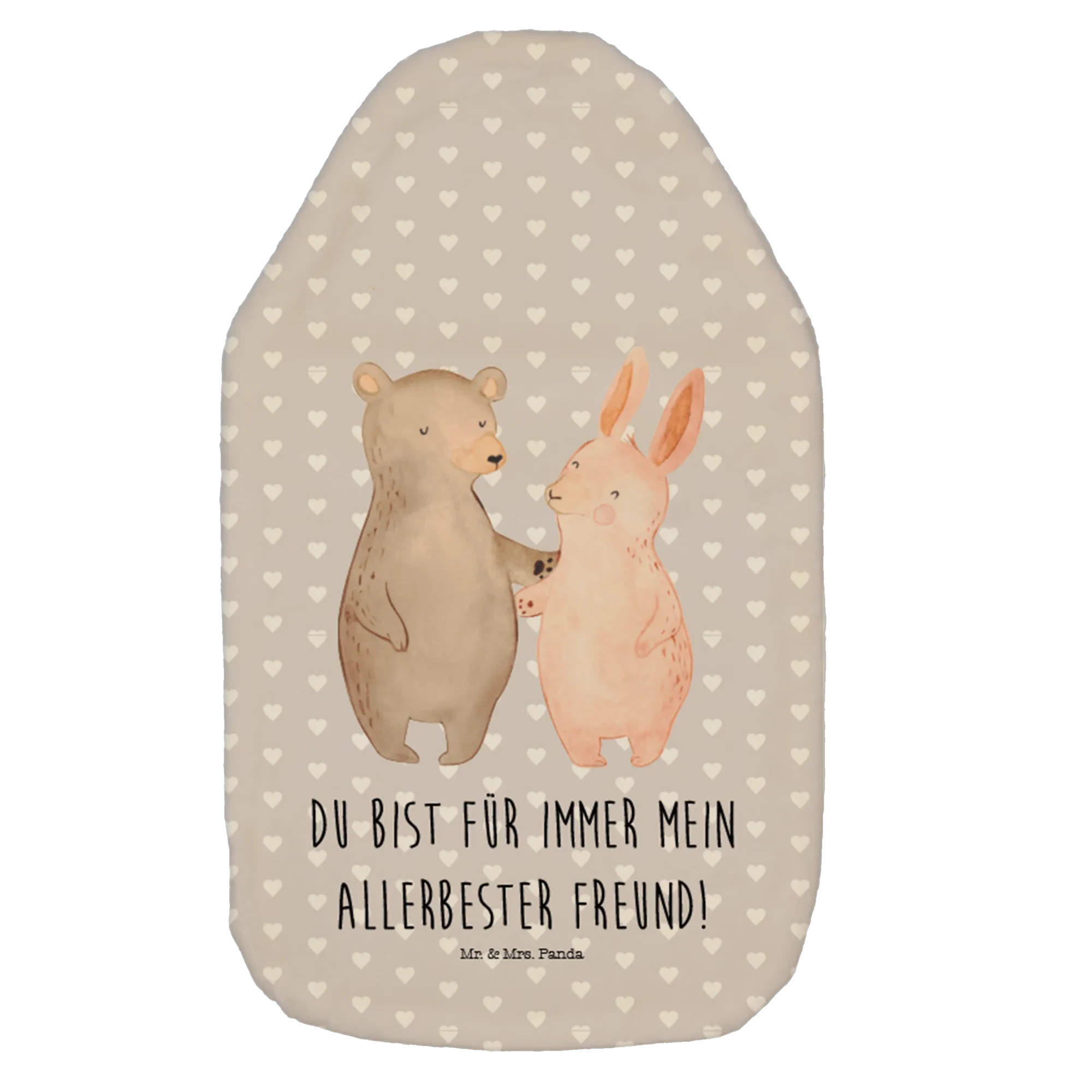 Hot water bottle bear and rabbit Embrace - with a saying - Pastel Gray