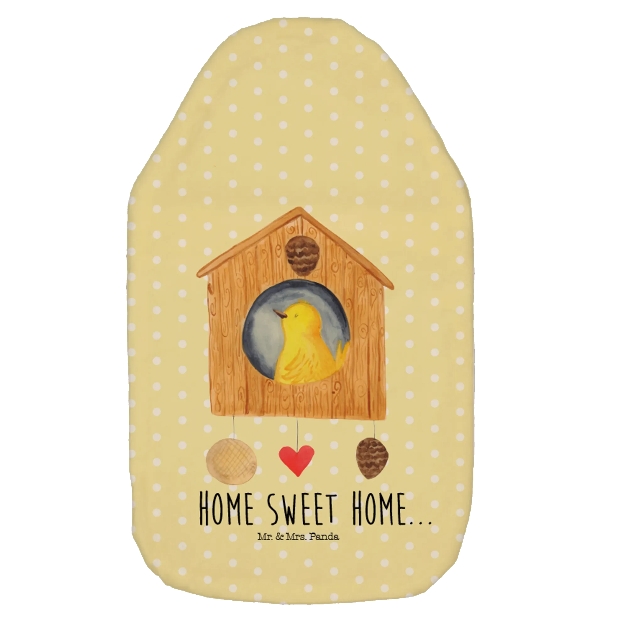 Hot water bottle birdhouse Home - with a saying - Pastel Yellow