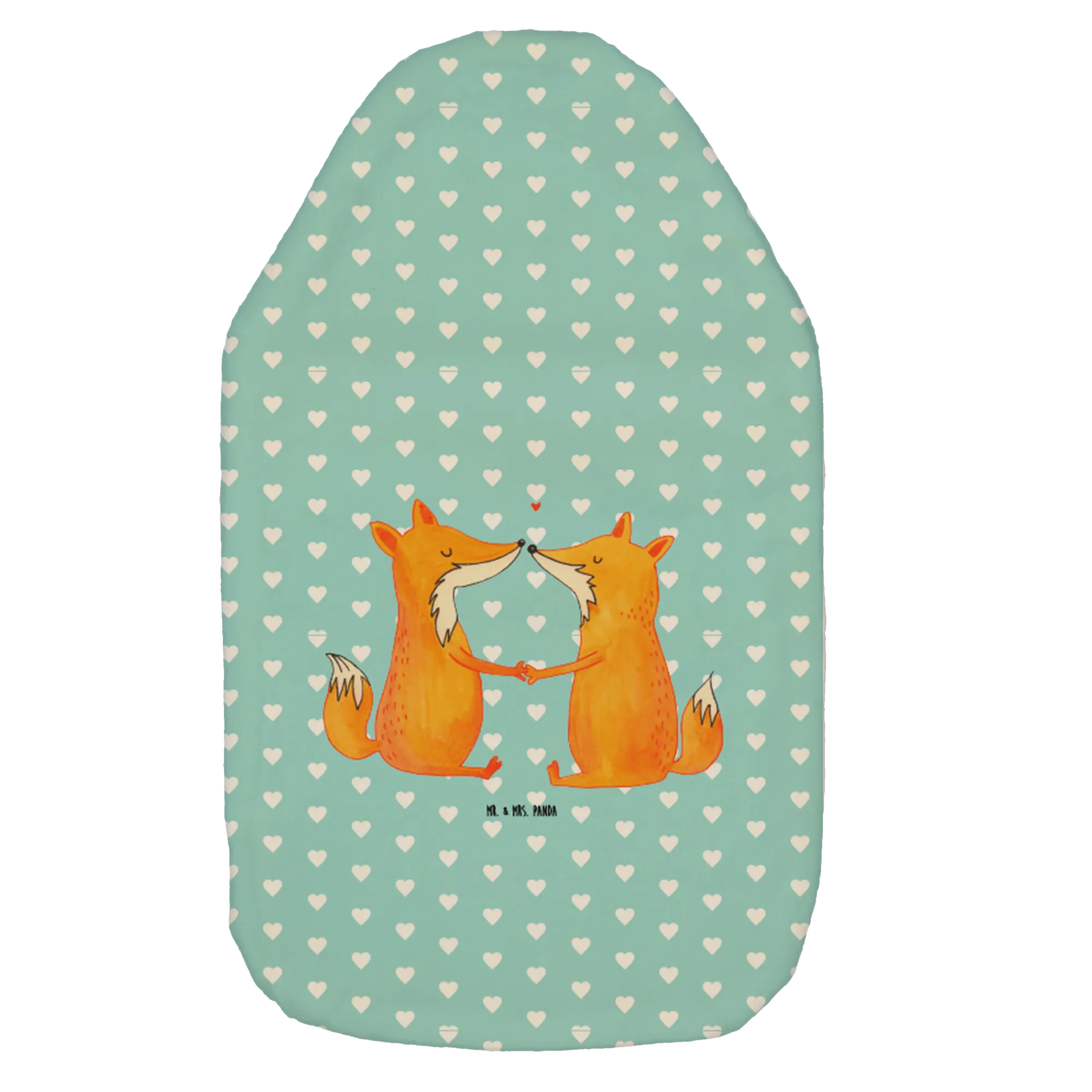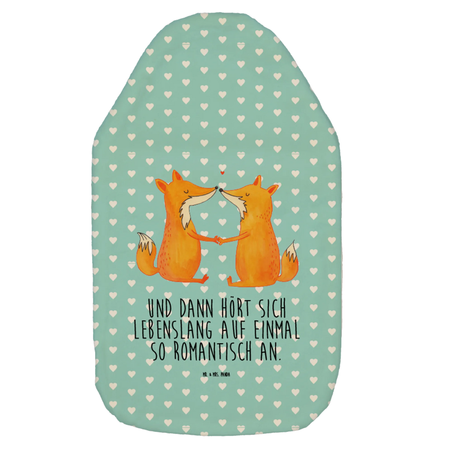 Hot water bottle foxes Love - with saying - Turquoise Pastel