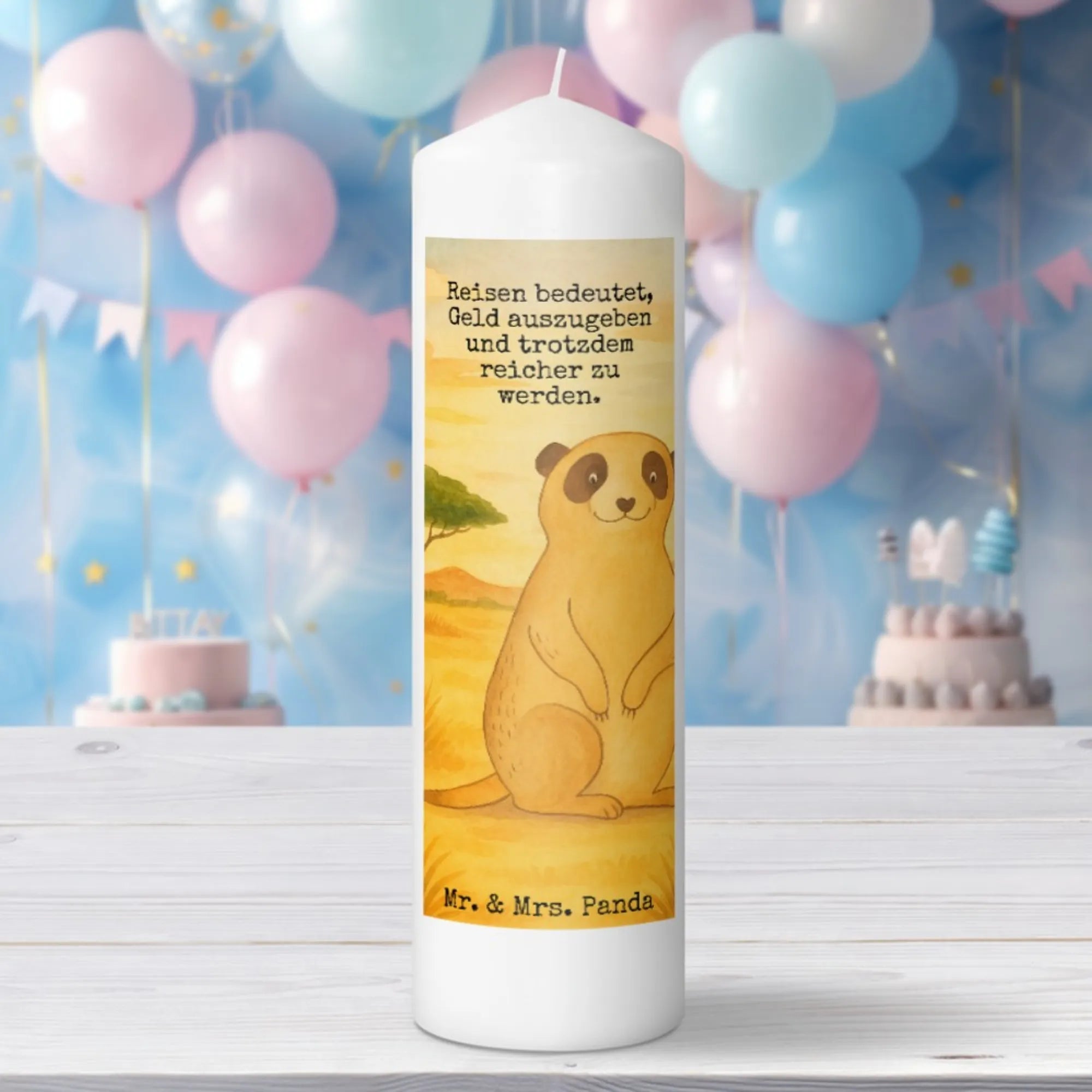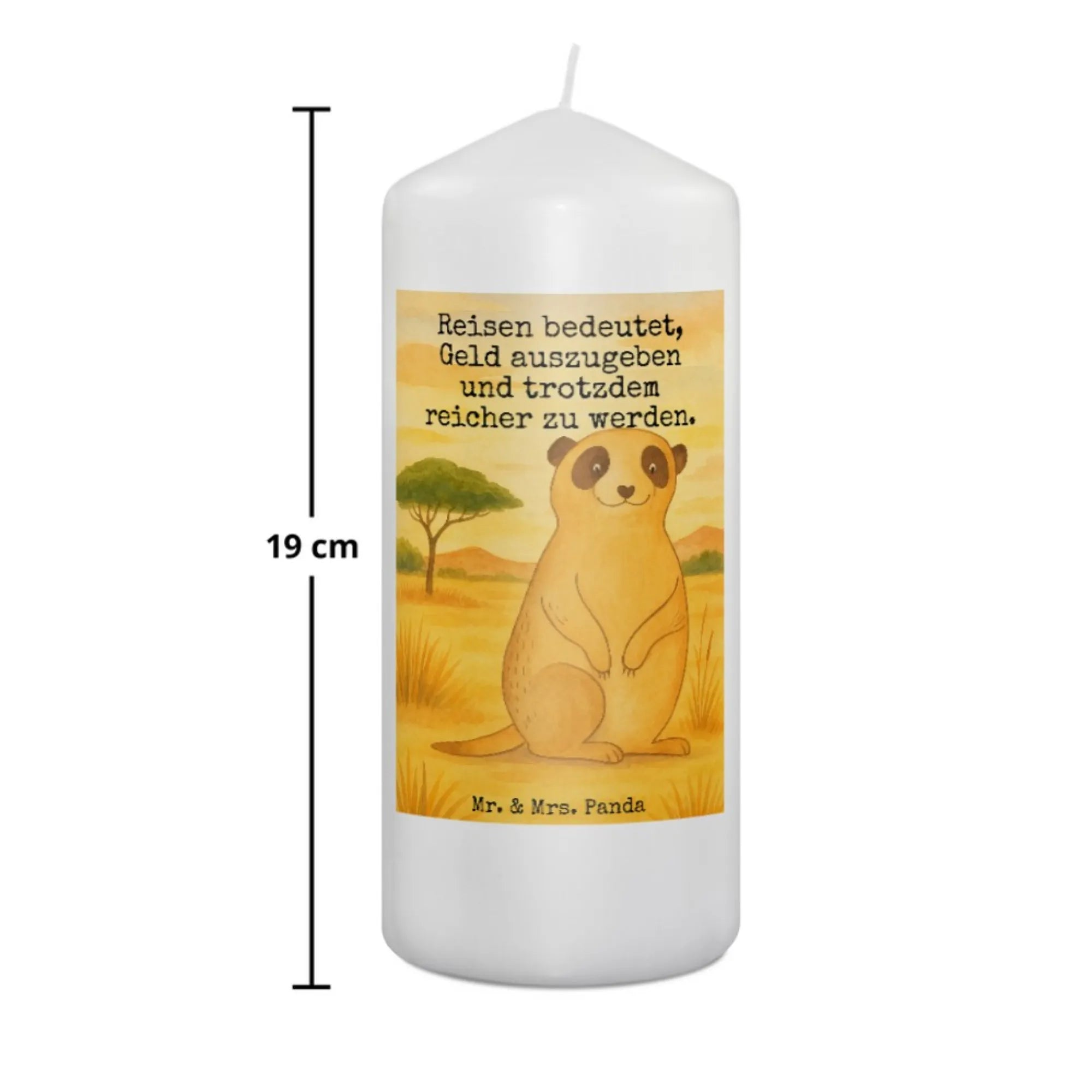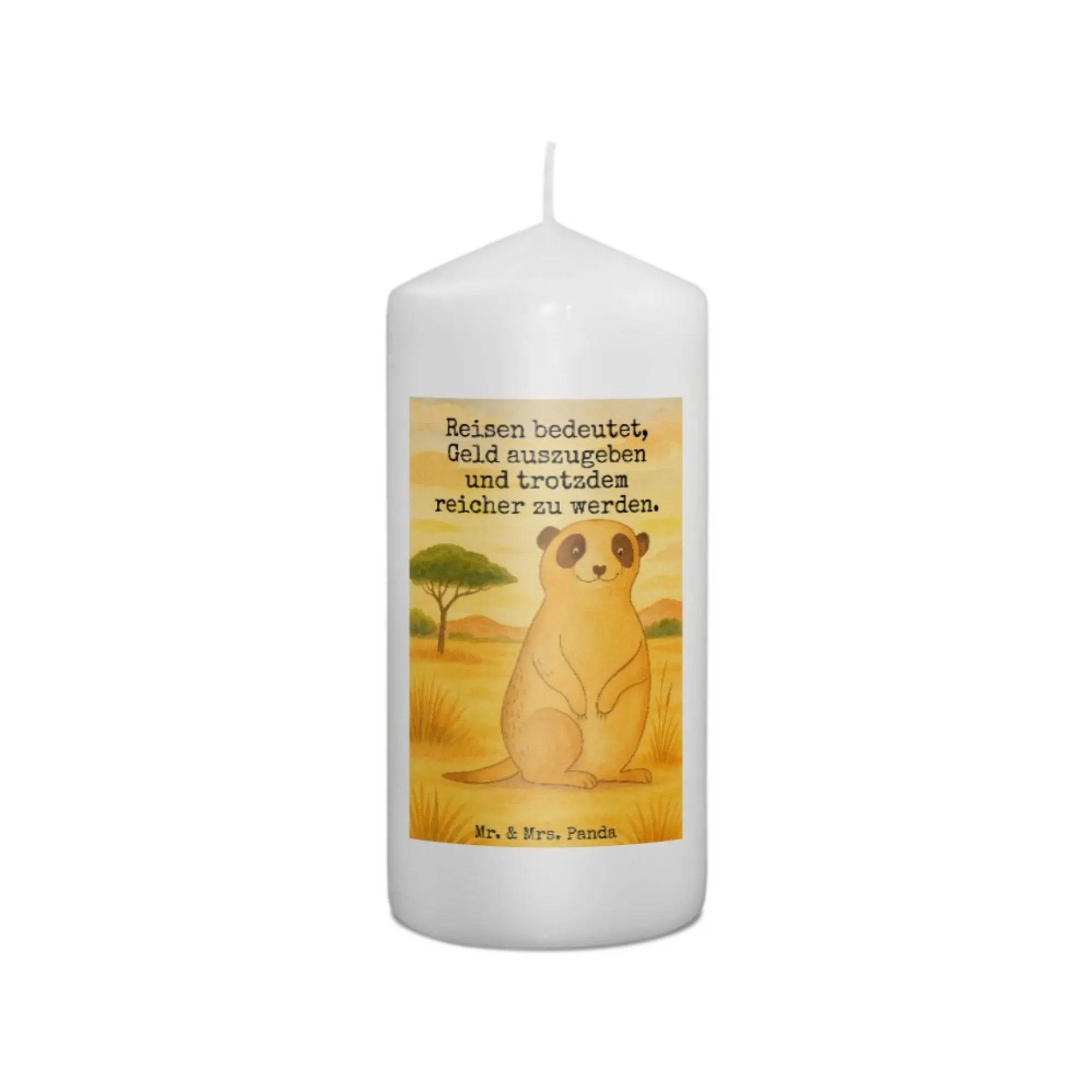 Kerze Erdmännchen Design - 19 x 8 cm - mit Spruch