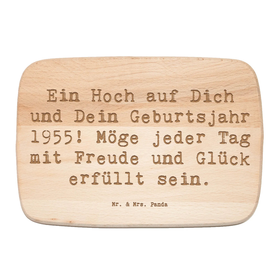 Das Frühstücksbrett "Ein Hoch auf Dich und Dein Geburtsjahr 1955! Möge jeder Tag mit Freude und Glück erfüllt sein." von Mr. & Mrs. Panda ist das perfekte Geschenk für all jene, die 1955 geboren wurden. Mit seiner liebevollen Lasergravur bringt es eine persönliche Note in die Küche und sorgt für ein Lächeln beim Frühstück.