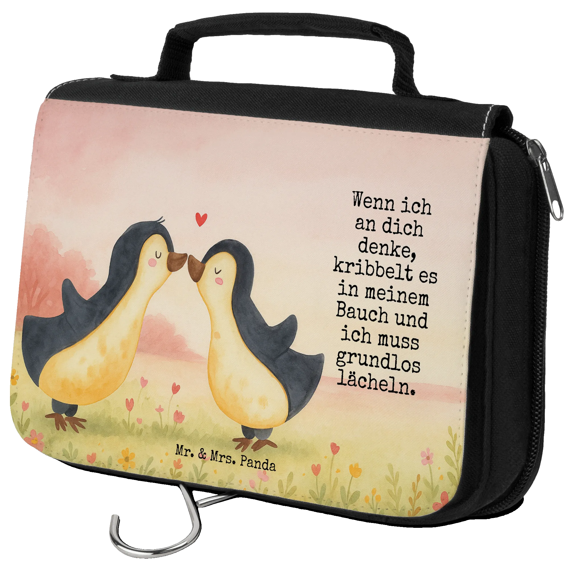 Kulturbeutel Pinguine Kuss Design - mit Spruch