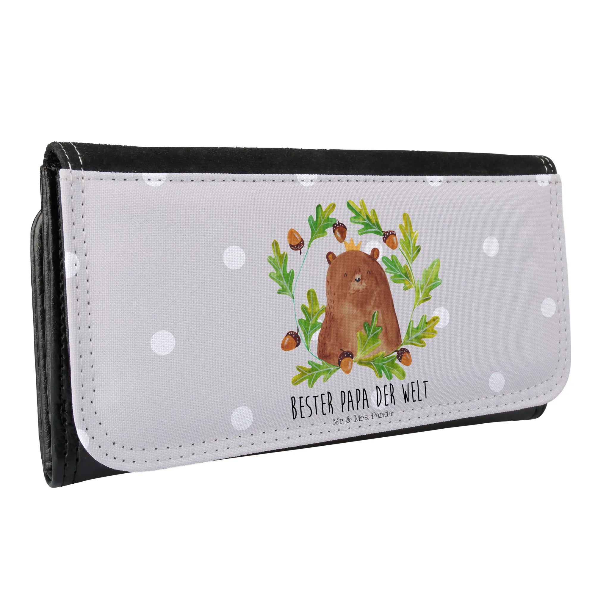 Ladies purse bear king - with saying - Pastel Gray