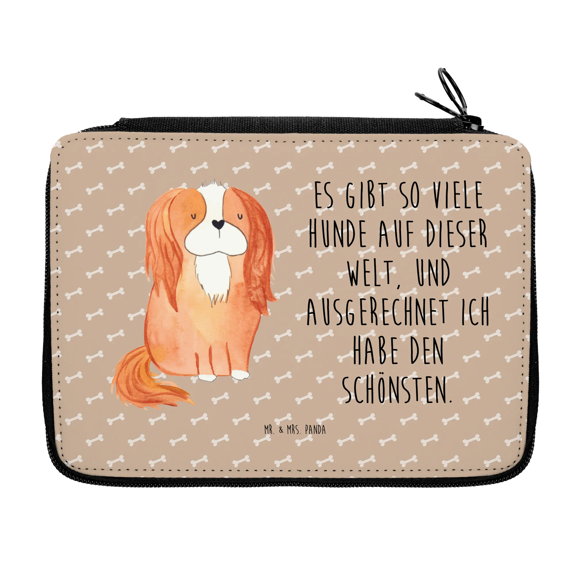 As a proud dog lover, your child will fall in love with this adorable pencil case, boasting a whimsical design that incorporates the beloved Cavalier King Charles Spaniel. The statement "Es gibt so viele Hunde auf dieser Welt, und ausgerechnet ich habe den Schönsten" adds a splash of playful personality, showcasing both the pride of dog ownership and the joy of being a child. Made from durable, high-quality synthetic fibers, this pencil case is not only visually appealing but also sturdy enough to endure school life, keeping all art supplies safe and organized.