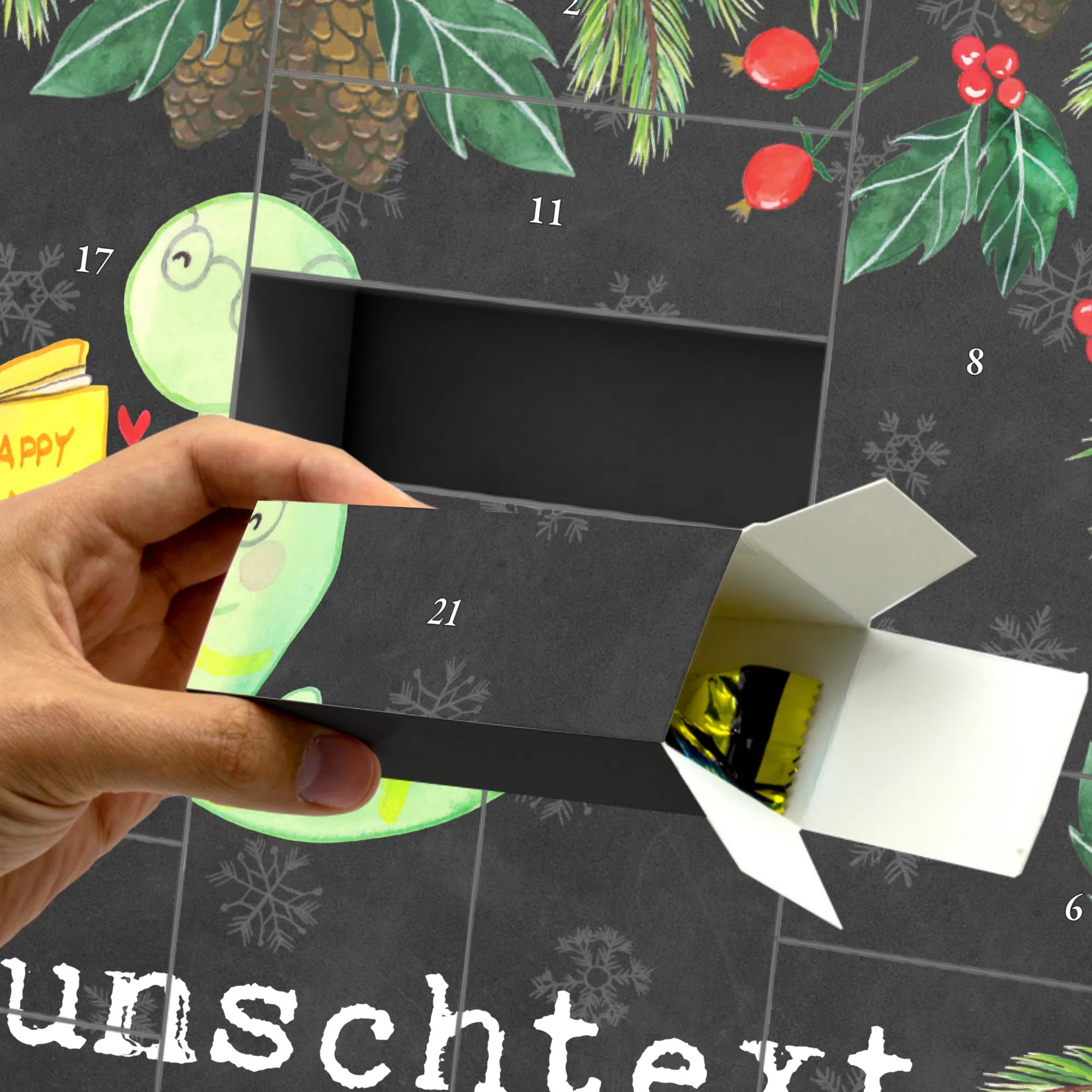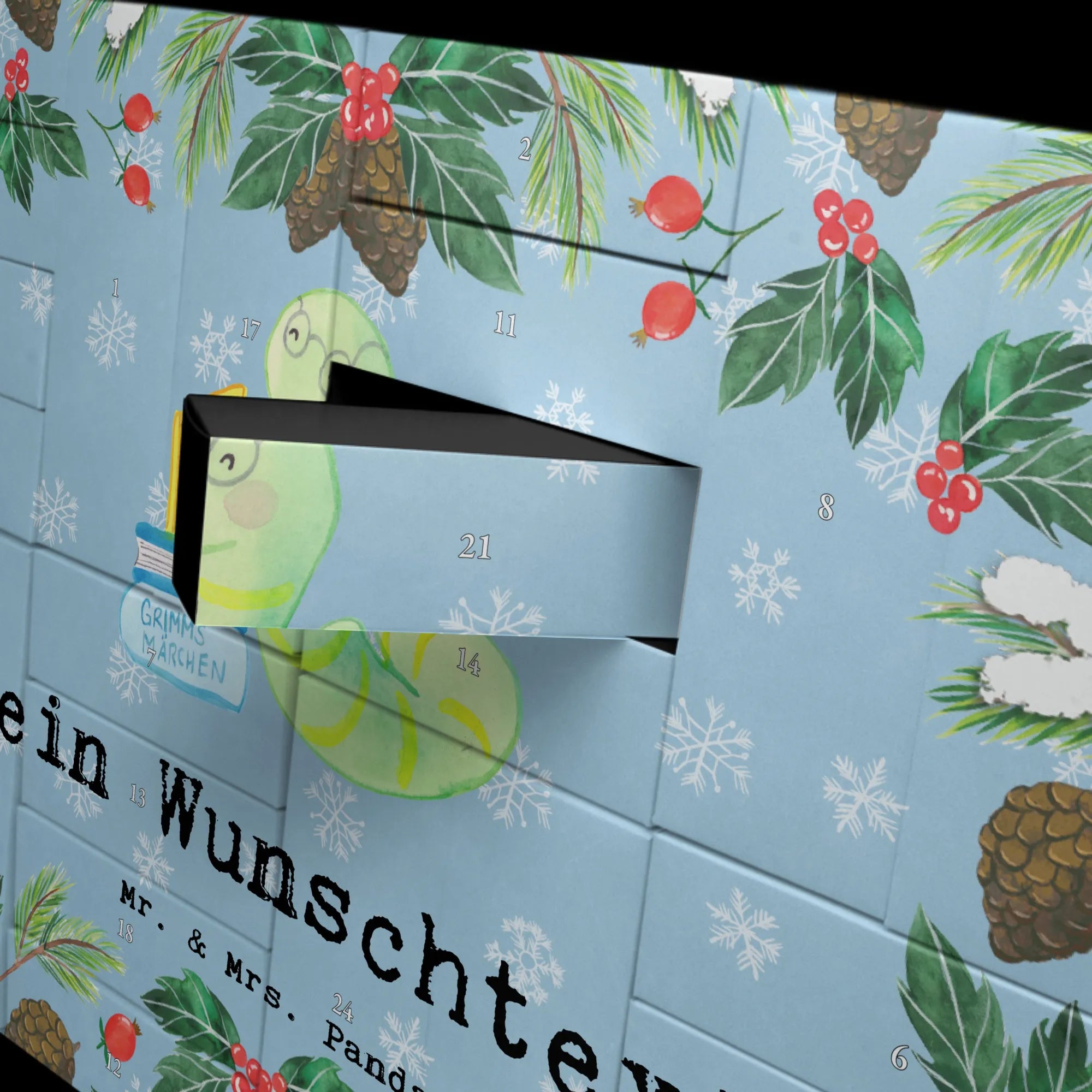 Discover the magic of the Advent season with Mr. & Mrs. Panda's personalized fillable Advent calendar. With the option to fill it with your own favorite surprises, this calendar becomes a heartwarming centerpiece of your holiday preparations. Each of the 24 boxes is ready to be uniquely filled by you, bringing daily joy to your loved ones or yourself. The heartfelt drawings and sayings, combined with the ability to personalize the calendar with a name or message of your choice, make it an incomparable and special gift that makes the Christmas season even more magical.