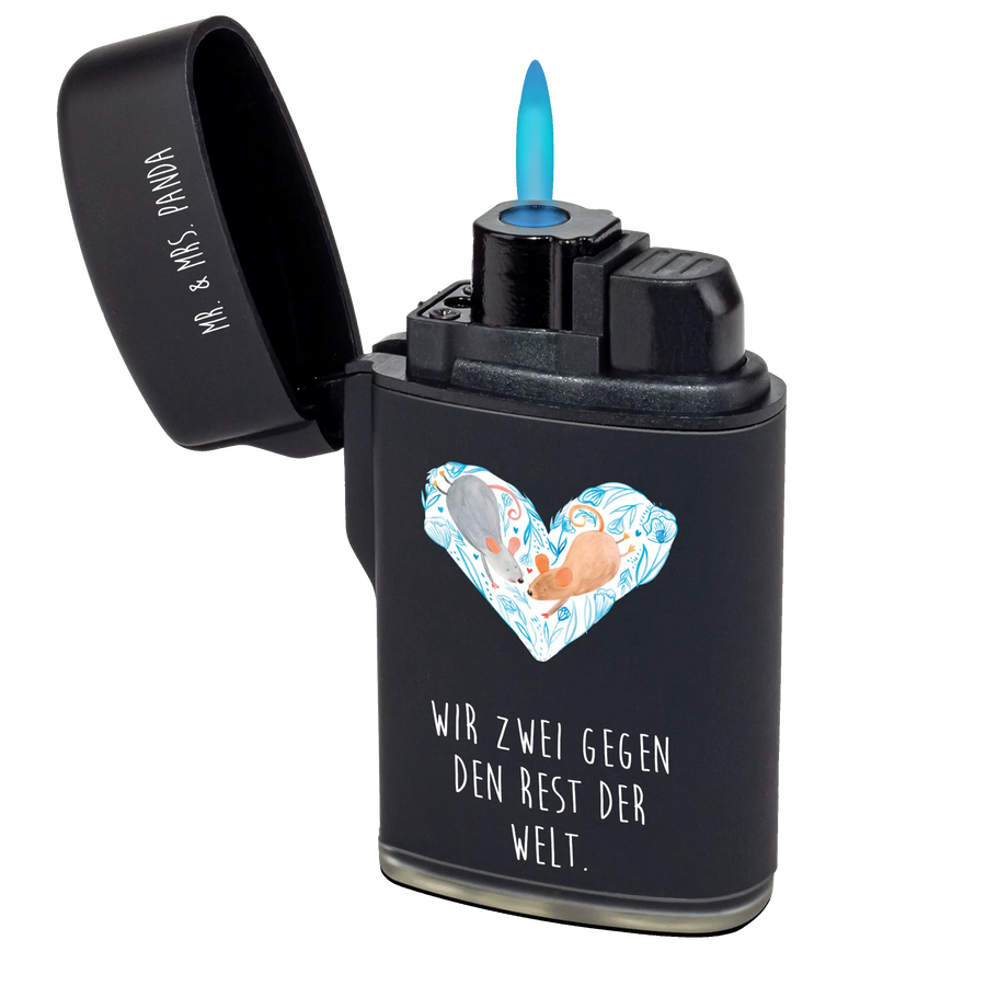 Every detail of the Mice Heart lighter is meticulously crafted. We see two adorable watercolor mice, one gray and one beige, snuggled together in a heartwarming embrace, surrounded by delicate floral elements and tiny hearts. This soft color palette radiates warmth and affection, serving as a daily reminder of love and togetherness. It’s more than just a lighter; it’s a beautiful love message that whispers, "How wonderful it is to walk through life together!"