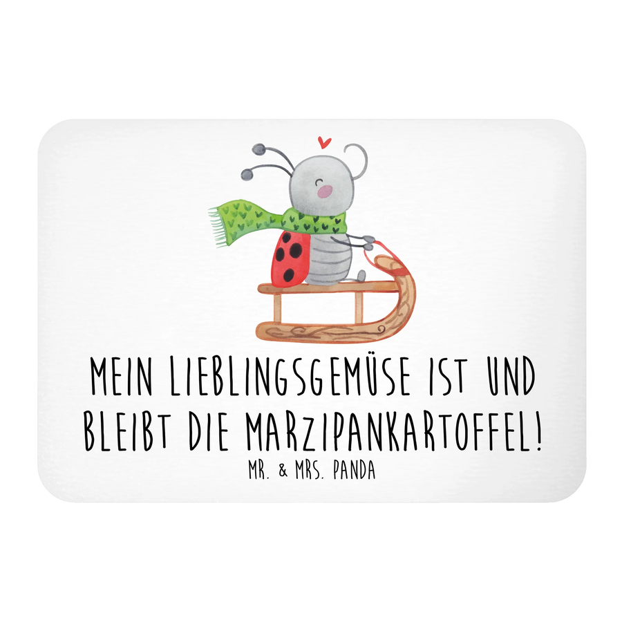 Imagine a cheerful little ladybug, ready to glide down the snowy hills on its sled, adorned in a snug green scarf dotted with tiny hearts. This vivid image captures the essence of winter joy, embracing the simple pleasures of sledding and the delight of warm marzipan. With the sparkling snow beneath and a heart floating above, it serves as a reminder that happiness can be found in the little things. The motif slogan, 'Mein Lieblingsgemüse ist und bleibt die Marzipankartoffel!' perfectly encapsulates this bliss, merging playful whimsy with the comfort of winter treats, inviting you to cherish the magic of the season.