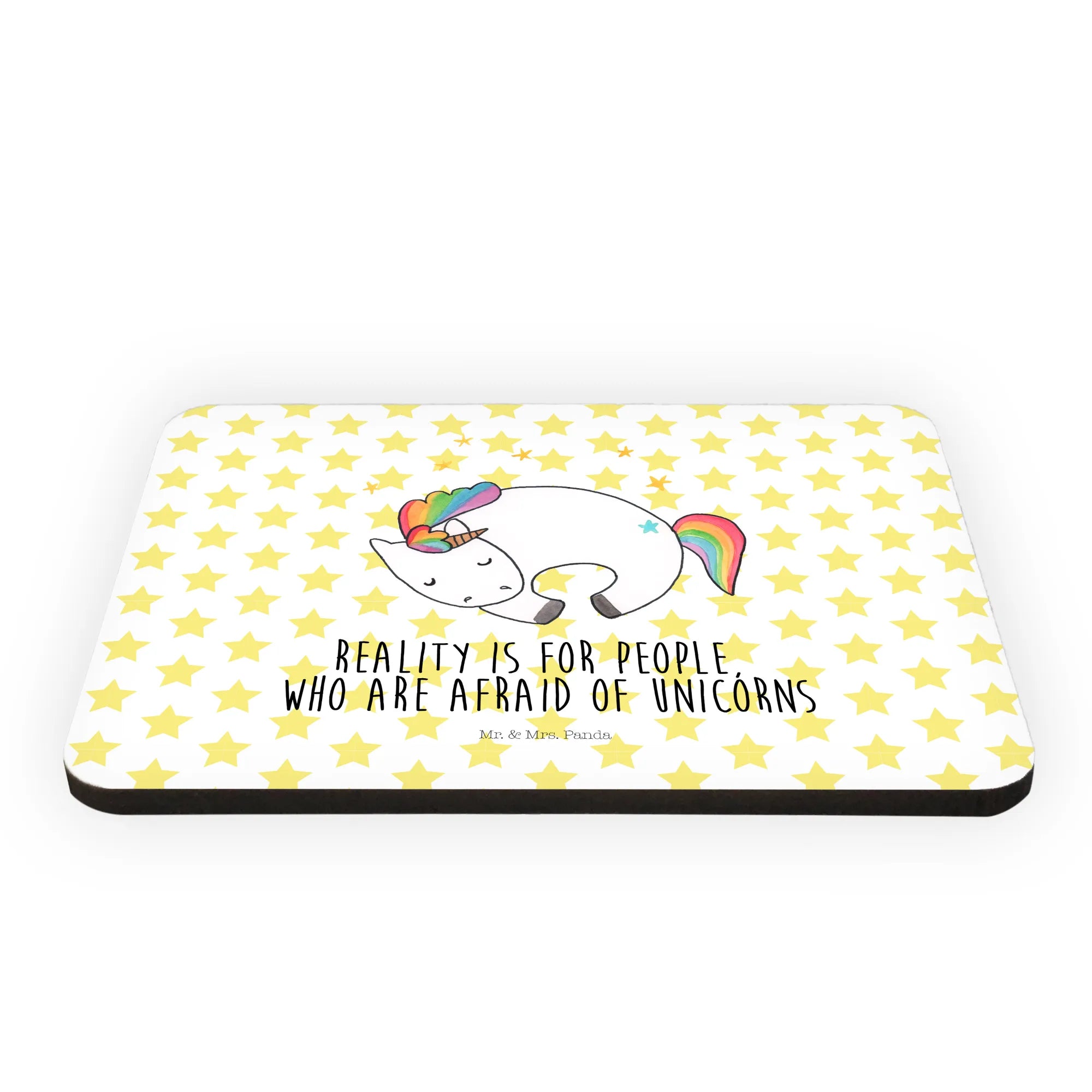 At 2 inches by 3 inches, this charming unicorn magnet is just the right size to make a statement on your fridge or magnetic board without being overwhelming. Crafted from high-quality MDF, it features a vibrant design that showcases a sleeping unicorn peacefully dreaming. The playful slogan, 'Die Realität ist was für Menschen, die Angst vor Einhörnern haben,' perfectly encapsulates the spirit of the unicorn - embracing the magical world of dreams over the mundane reality. It’s a humorous twist that will resonate with dreamers and those who live life with a sense of wonder!