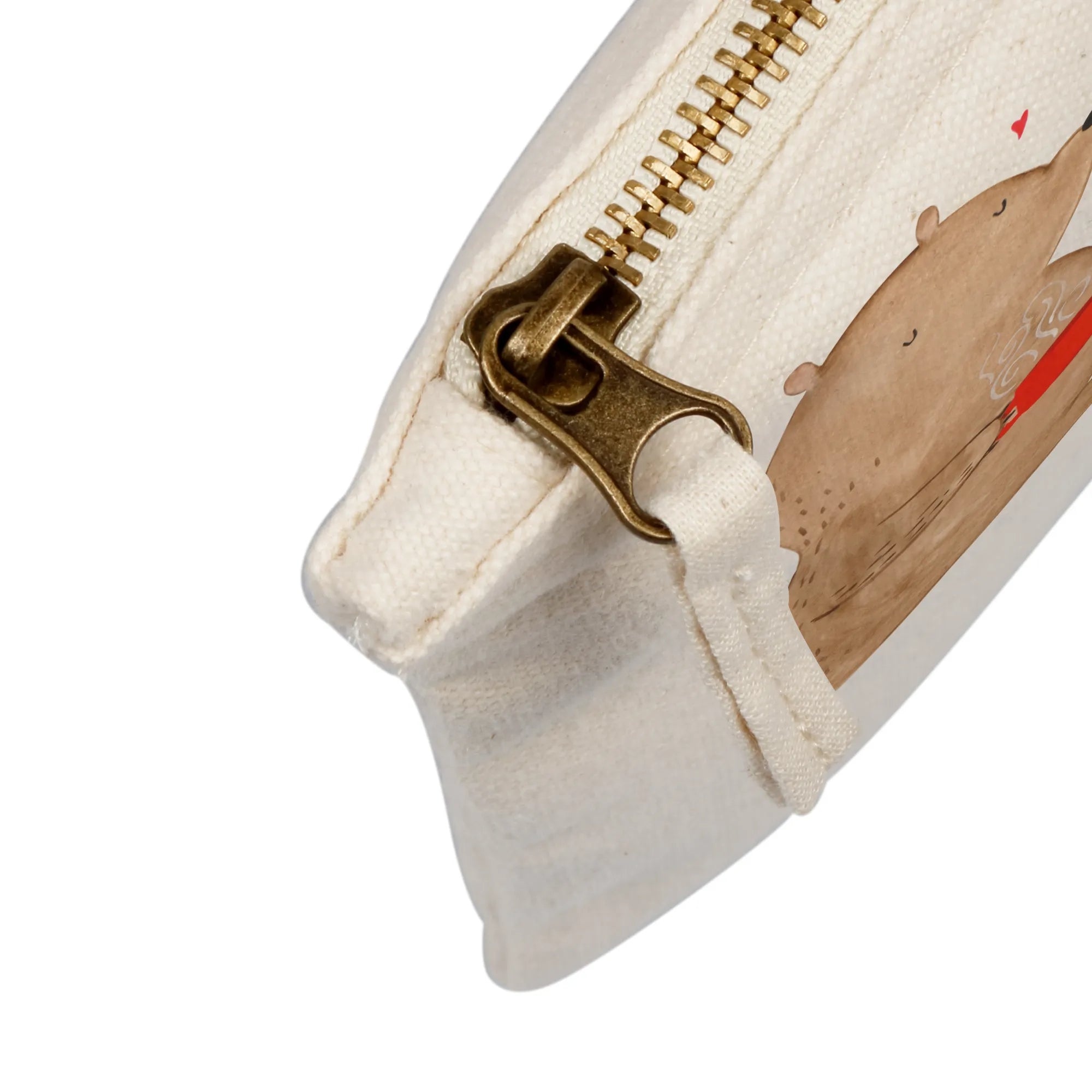 Fall in love with our Mr. & Mrs. Panda Make-up Bag, which combines functionality and style! Made from 100% soft cotton, it's printed with adorable designs that will bring smiles to your face every day. This versatile bag is perfect for keeping your makeup organized, but it also serves great for storing other small items like receipts or pens. It's available in various sizes to fit all your needs perfectly. The well-finished interior seams guarantee that it will maintain its shape over time, giving you a reliable and stylish place to keep your essentials. Whether you are at home or on the go, this make-up bag is an essential companion. For care, simply wash it by hand in lukewarm water. Transform your daily routine with a splash of fun and practicality through our unique make-up bag!